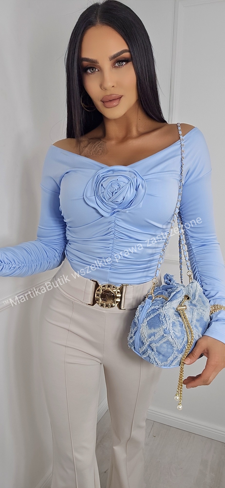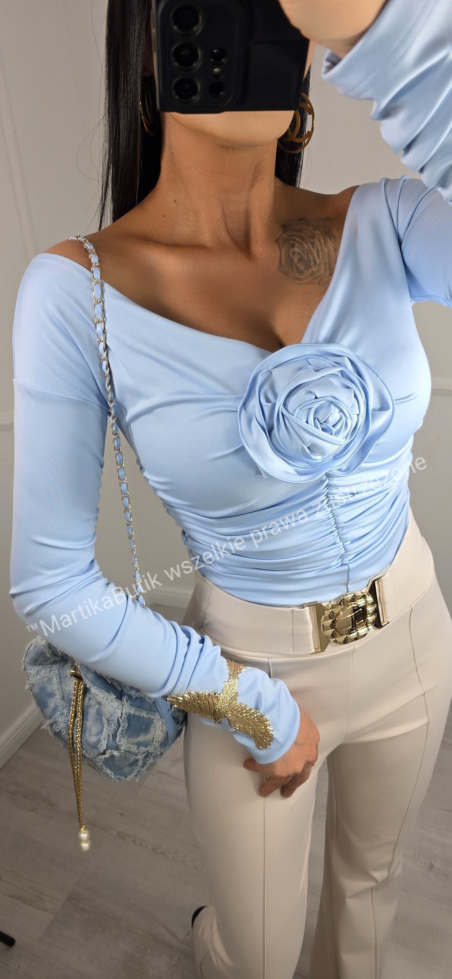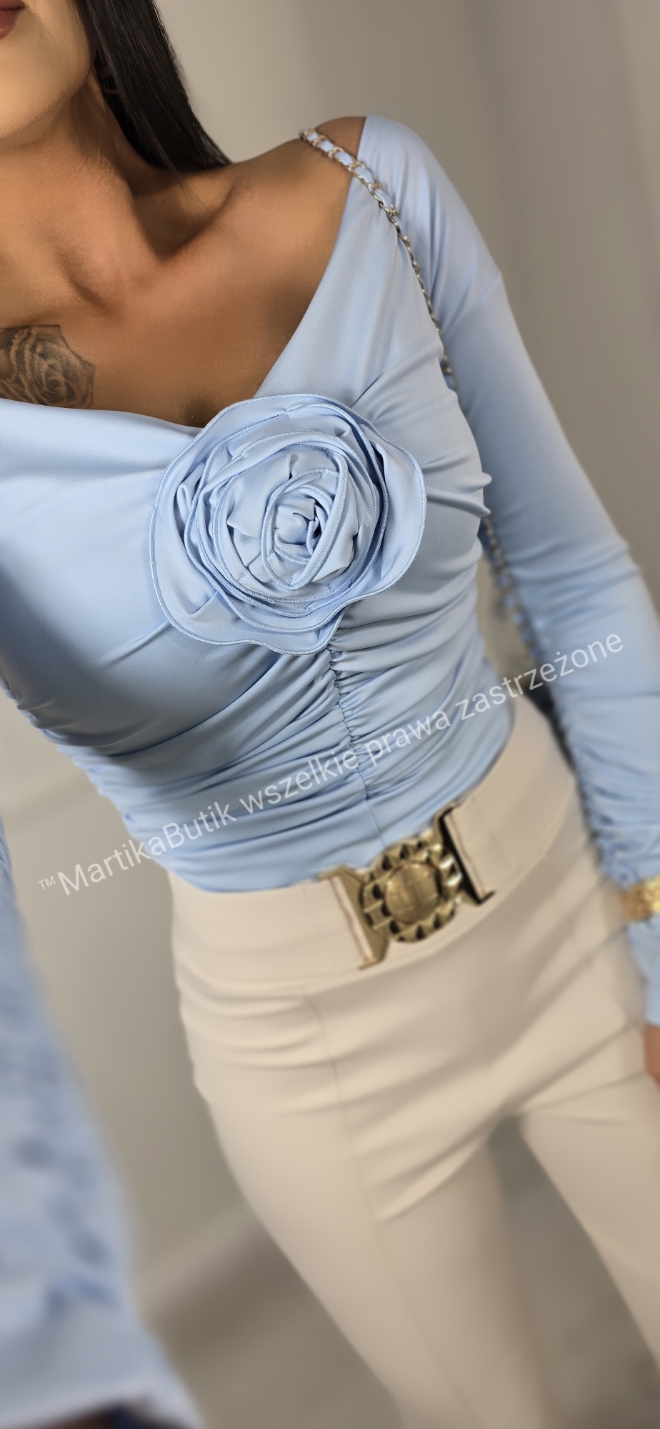 Bluzka z różą błękit La Diva