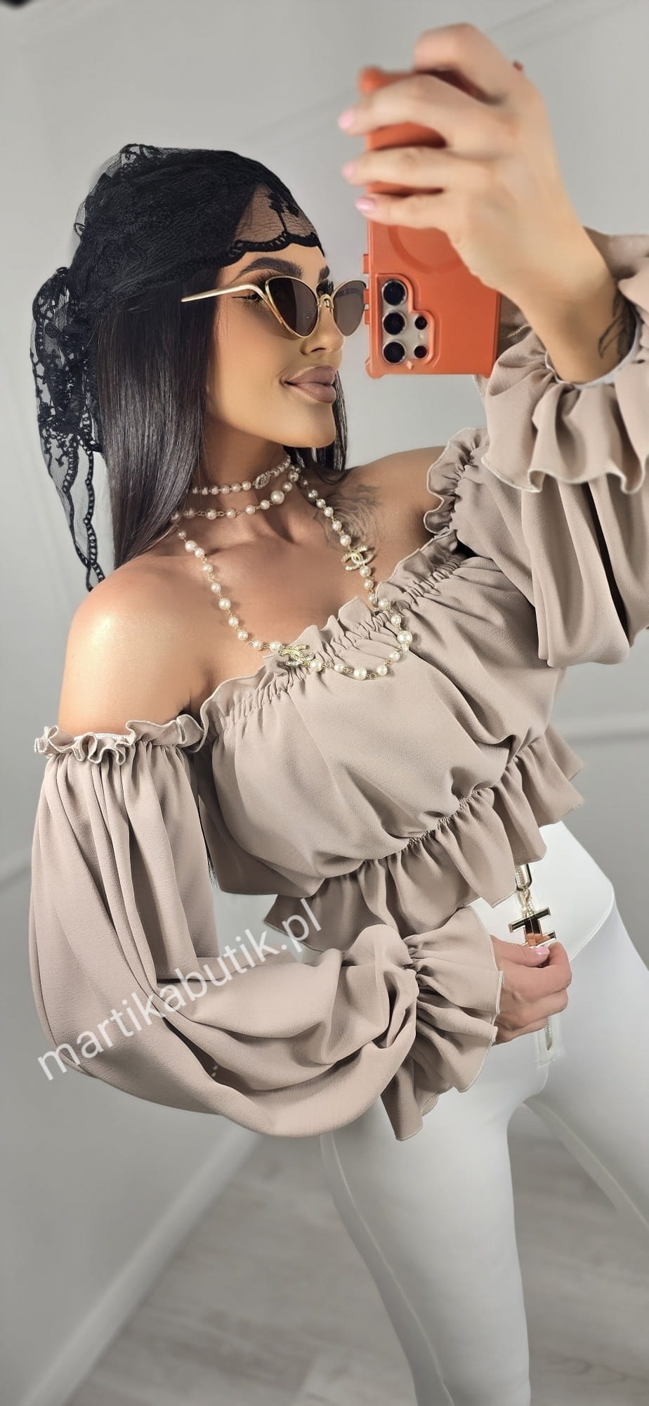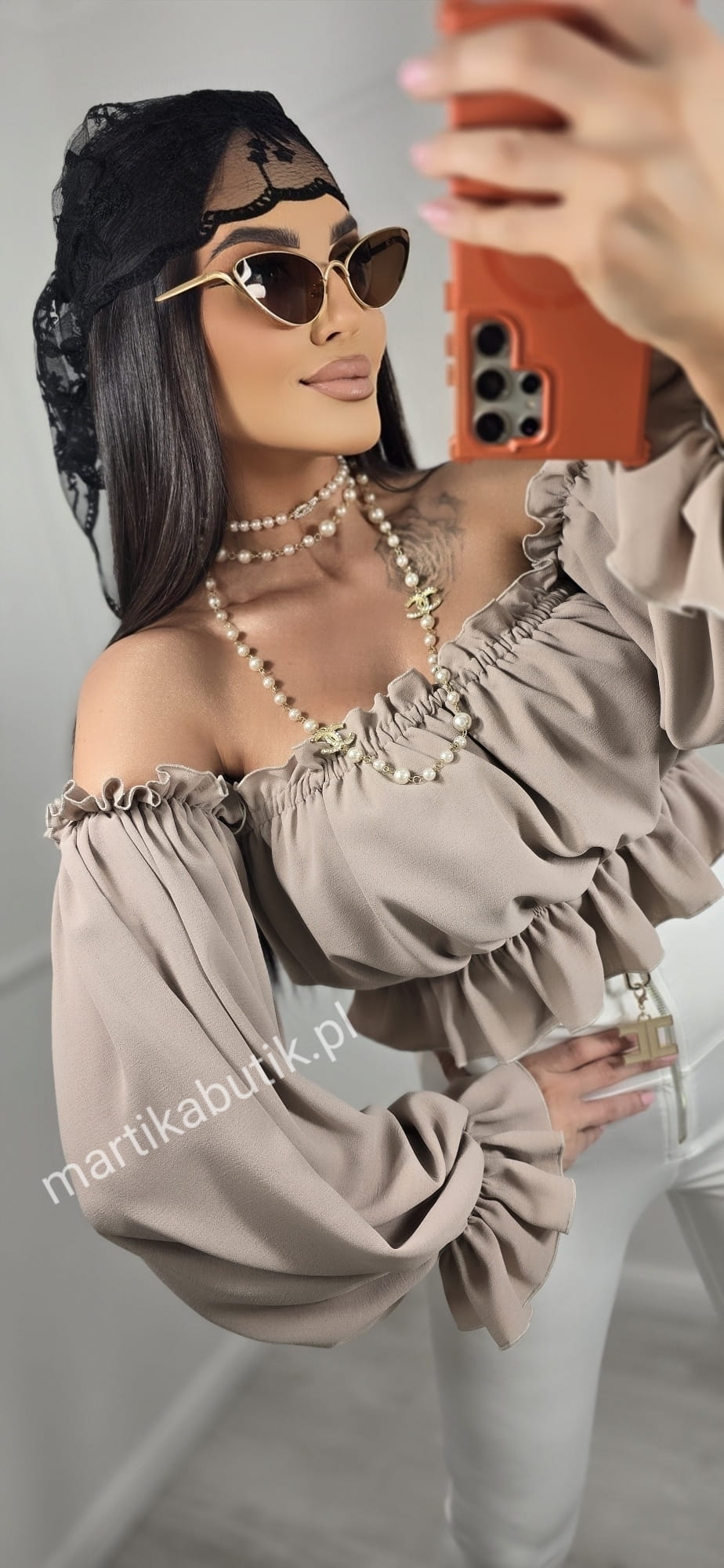 Bluzka hiszpanka wykonana z podwójnego szyfonu dla pełnego komfortu.