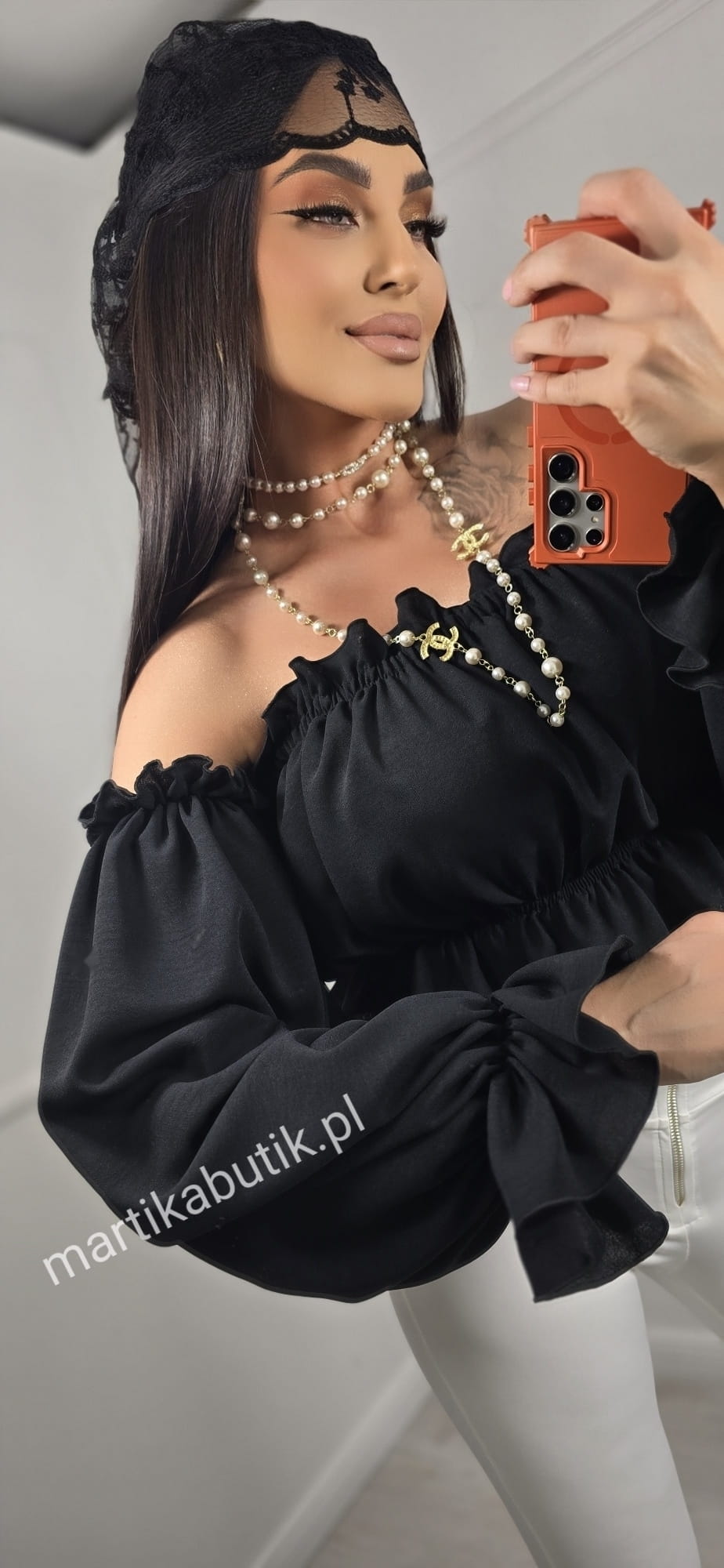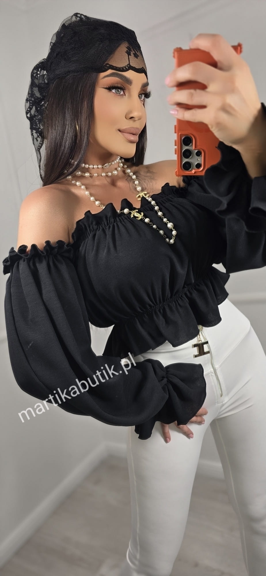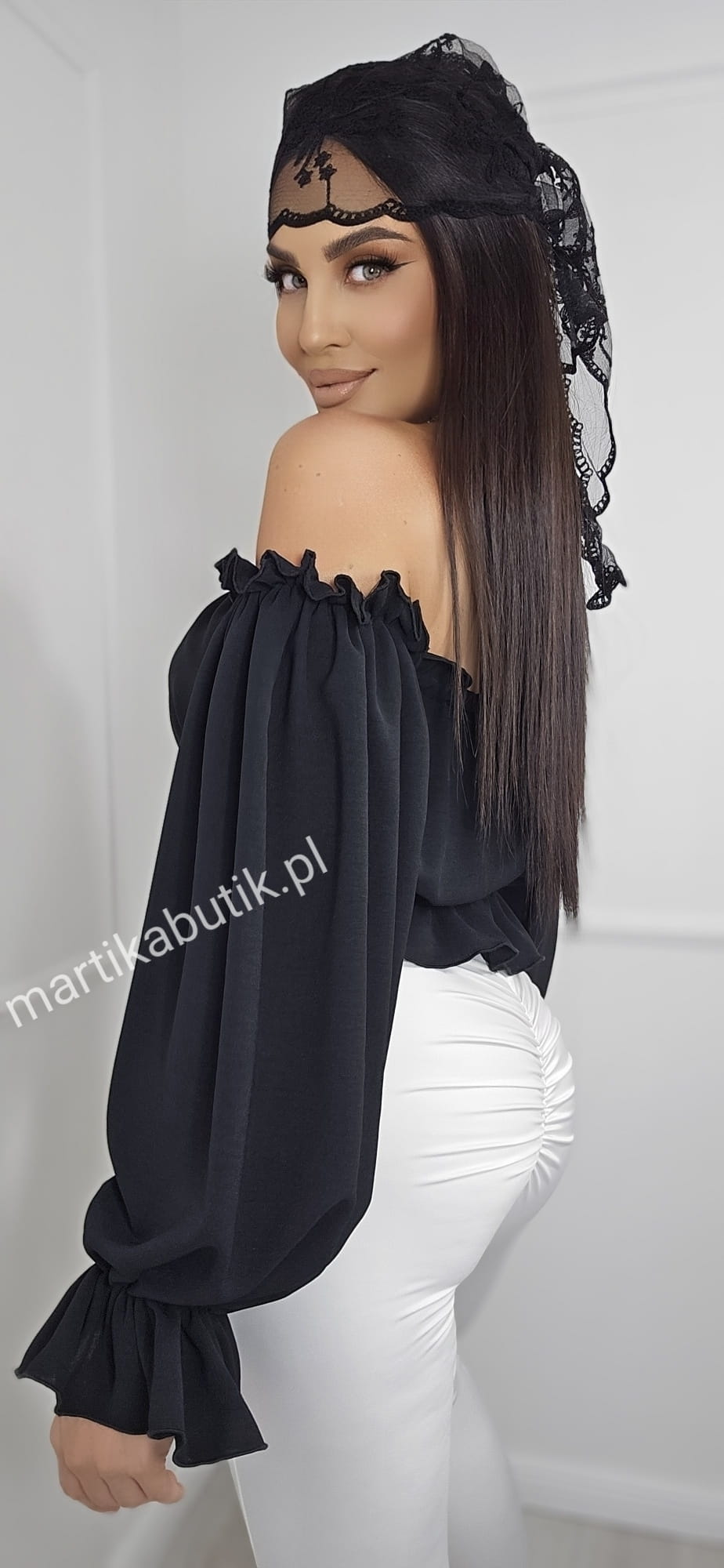Bluzka hiszpanka wykonana z podwójnego szyfonu dla pełnego komfortu.