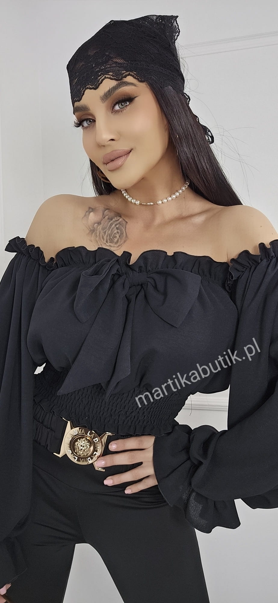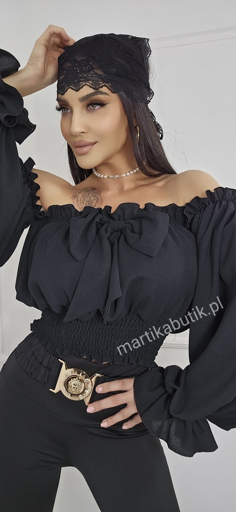 Bluzka hiszpanka wykonana z podwójnego materiału dla pełnego komfortu.