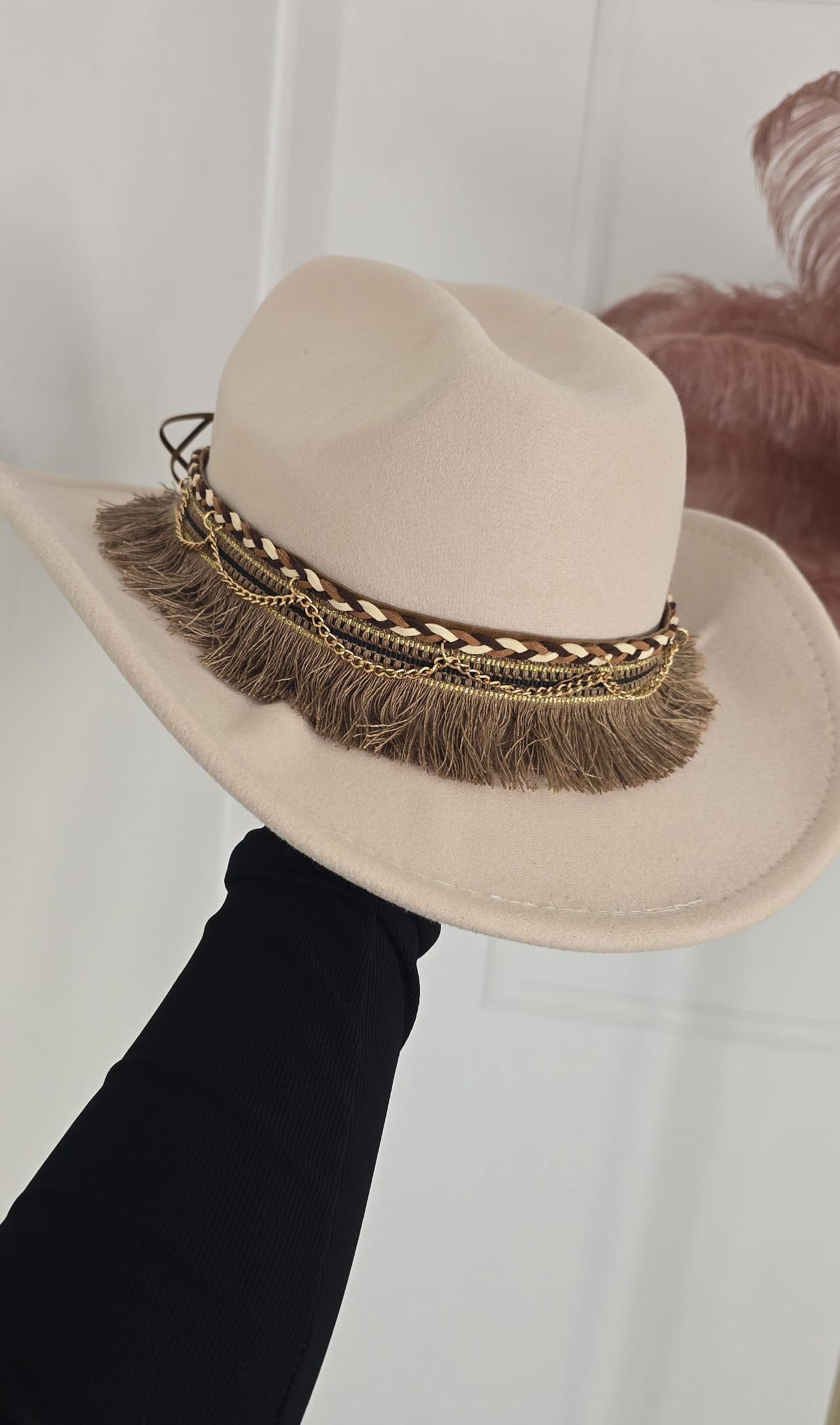 Kapelusz Frędzle jasny beż
