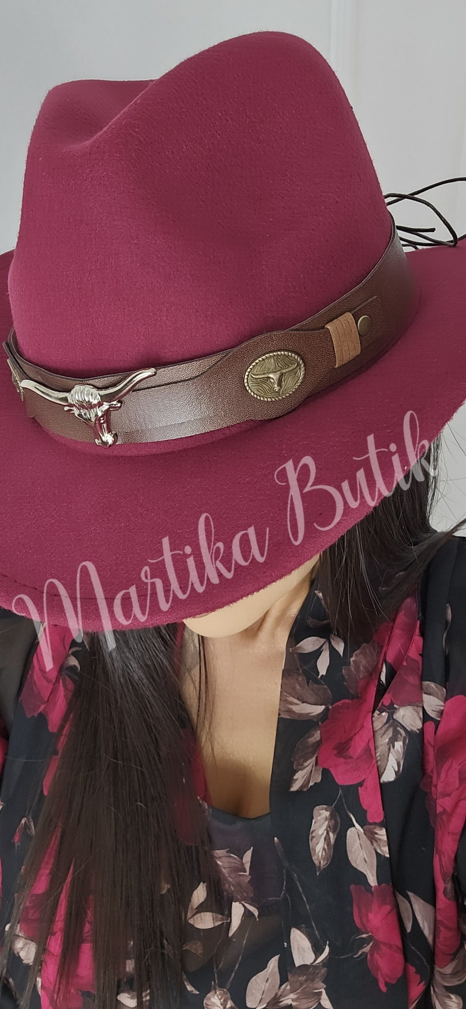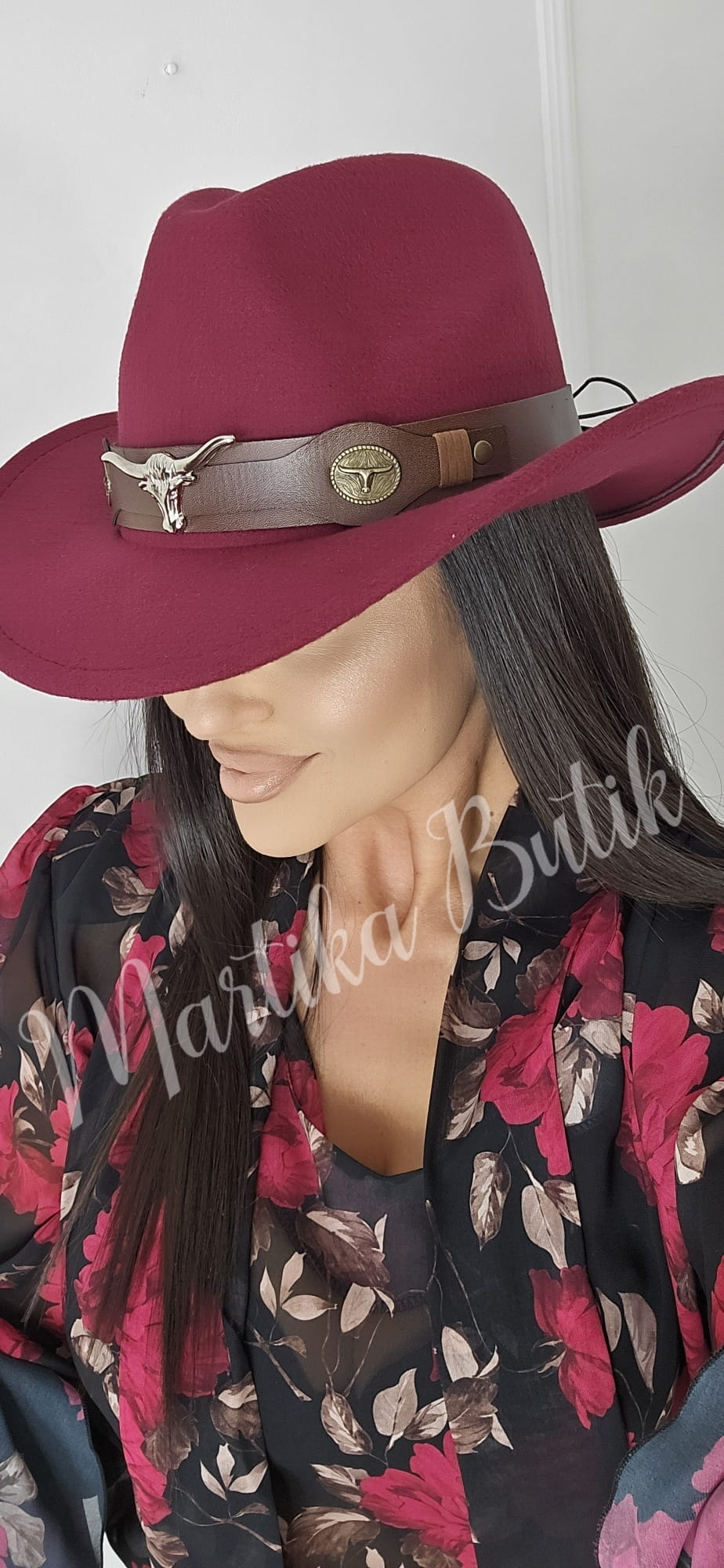 Średnie rondo rozmiar uniwersalny tasiemka ściągająca wewnątrz do zmniejszania obwodu. Kapelusz ozdobiony skórkowym paskiem z ozdobami.