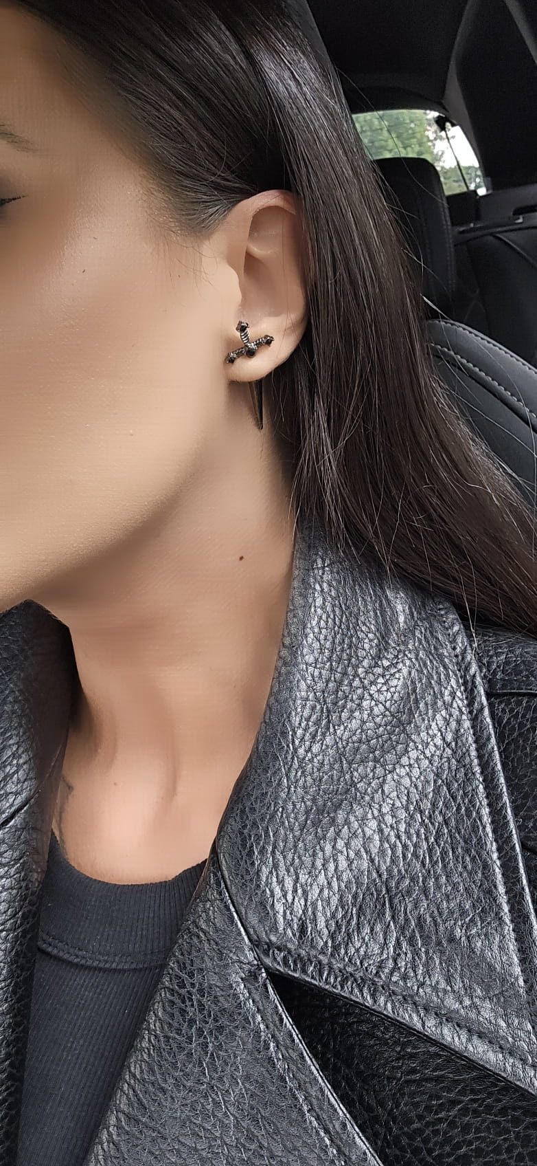 Kolczyki krzyżyki ozdobione czarnymi cyrkoniami.
