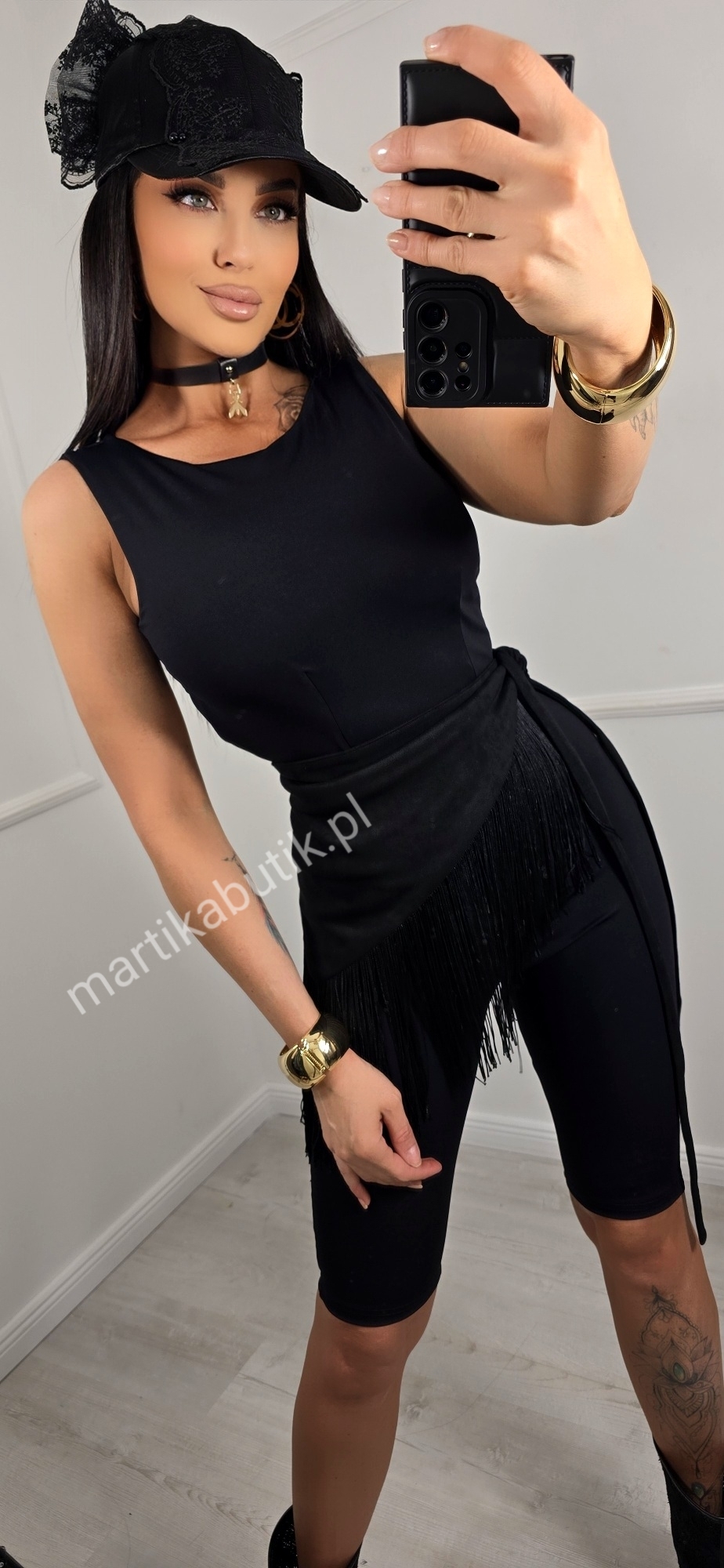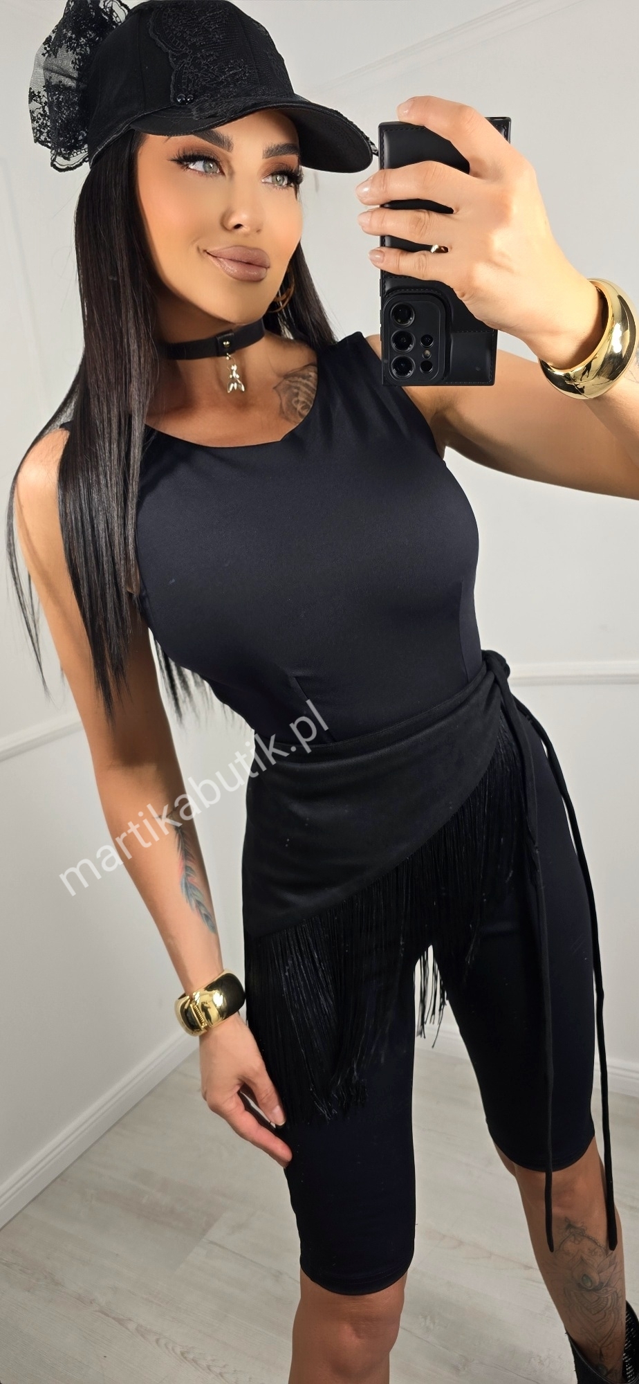 Chusta, którą modelka ma w talii nie jest w komplecie.