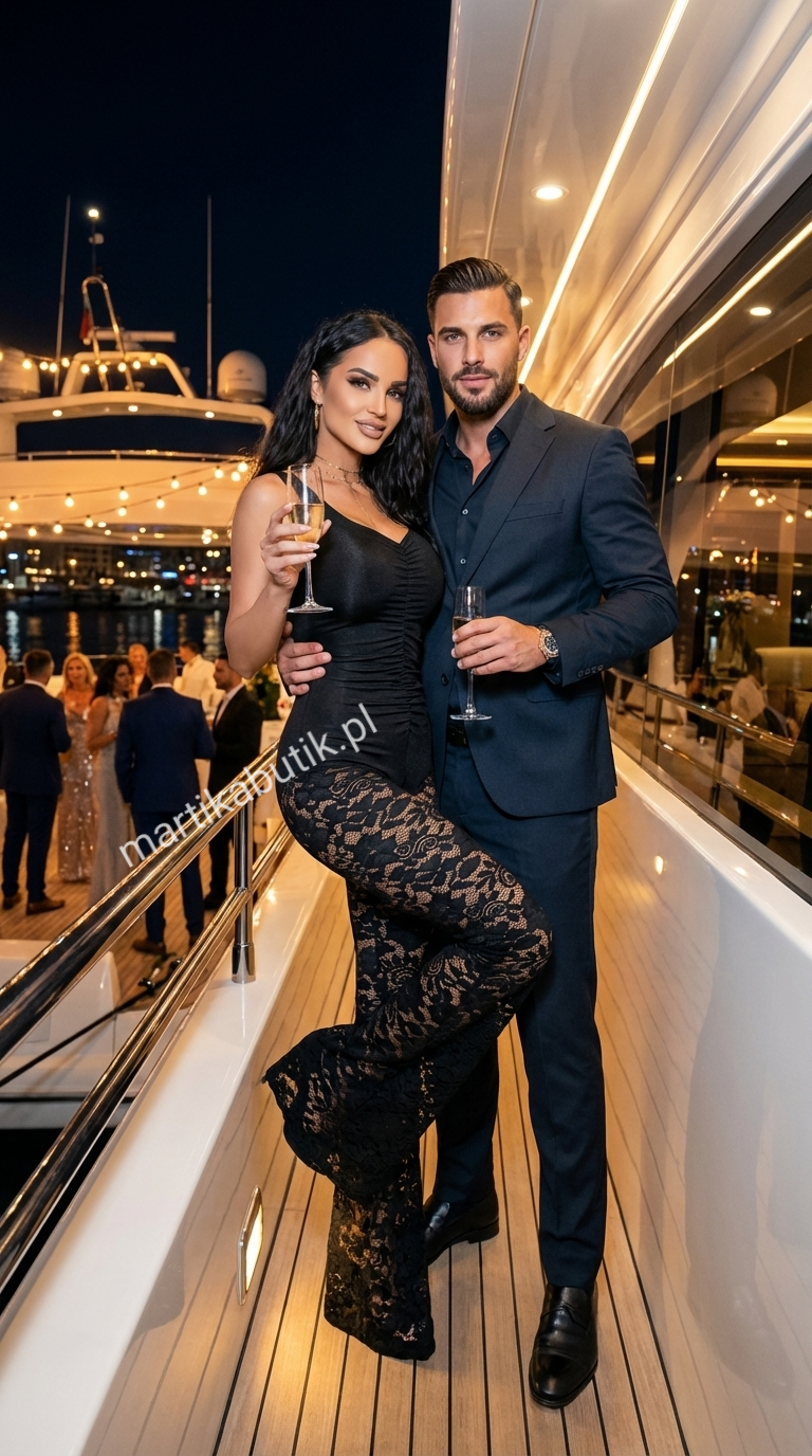 Krój typu flare ( dzwony) koronkowe nadaje stylizacji dynamiki, elegancji i optycznie wydłuża nogi, zwłaszcza w połączeniu z butami na obcasie.