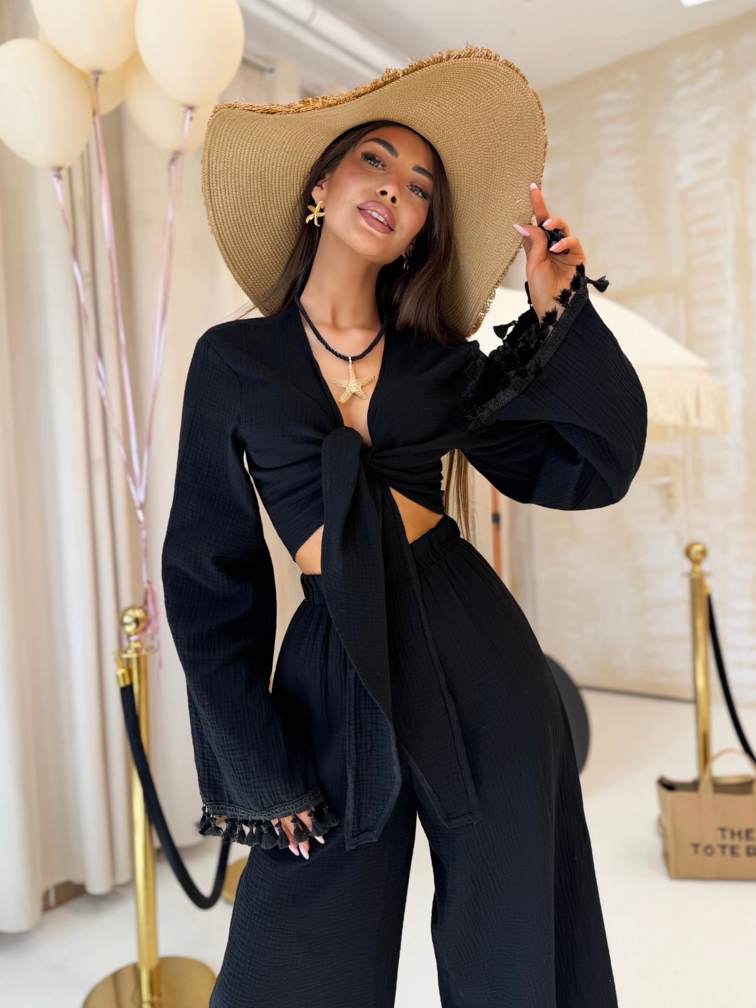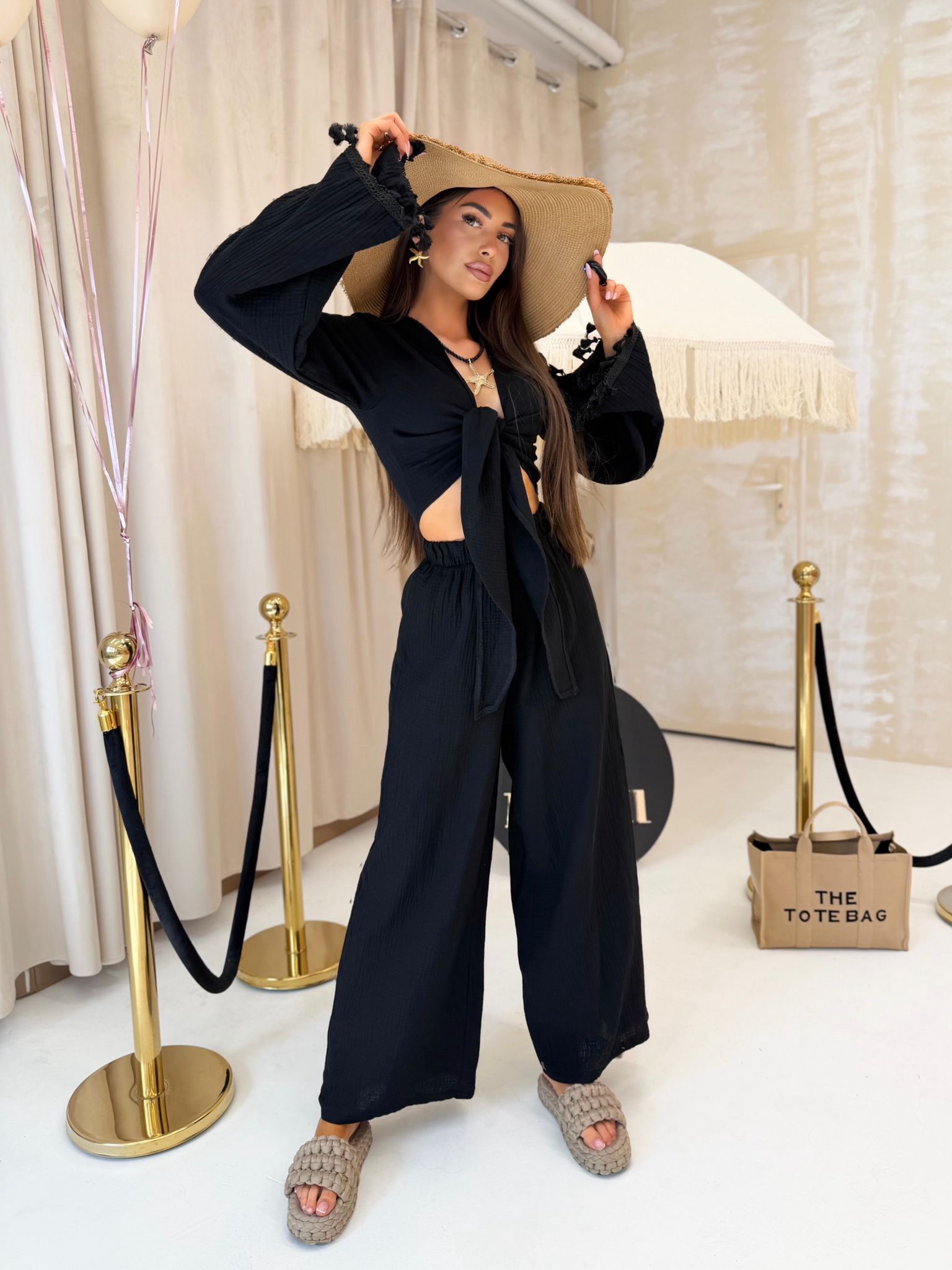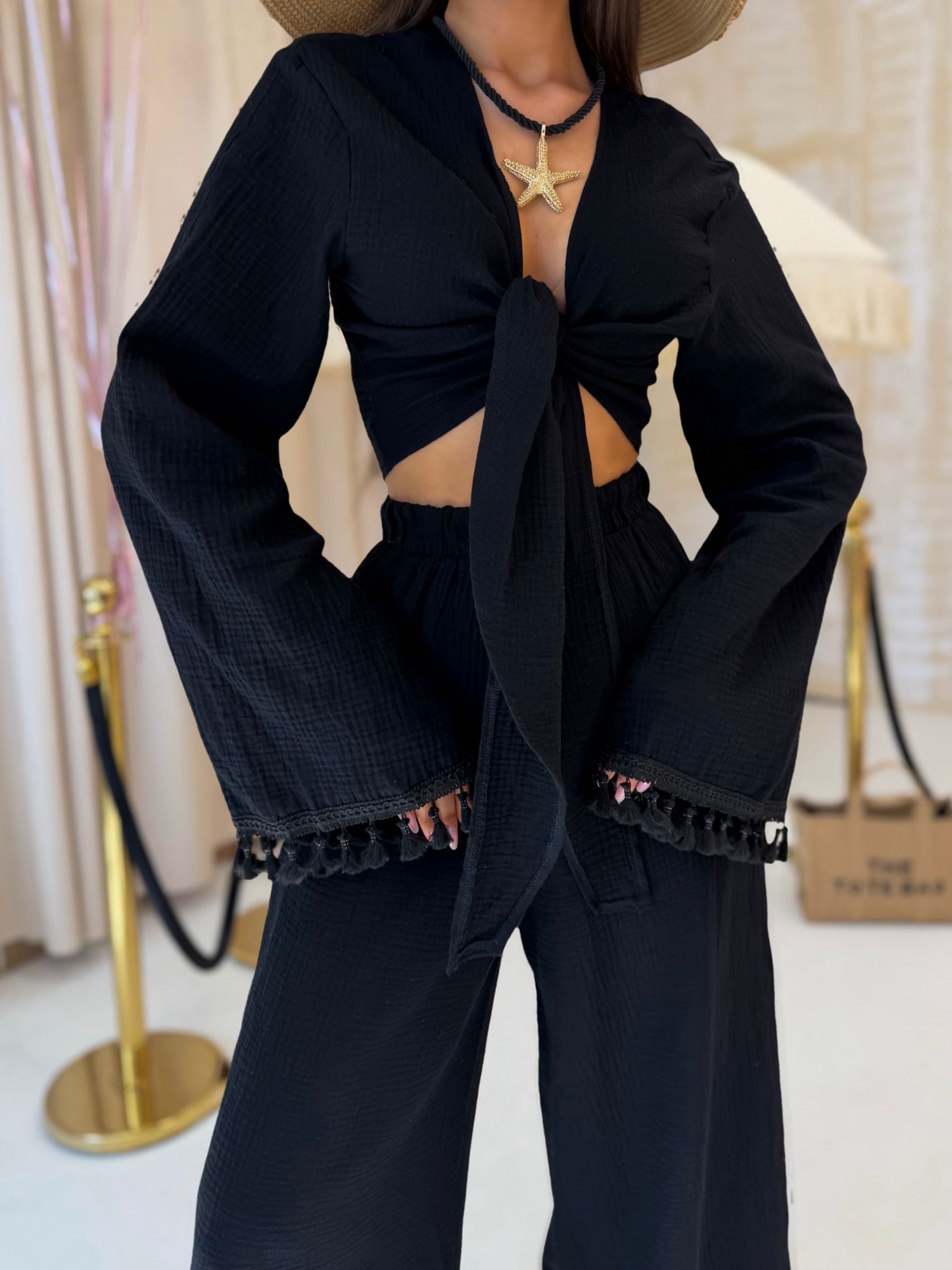 Komplet BOHO muślin długi czarny