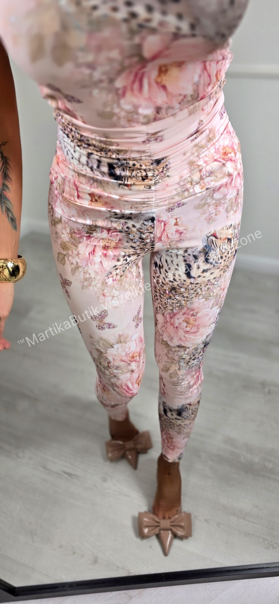 Komplet składa się z bokserki z różą po boku oraz z naszych bestsellerowych legginsów modelujących sylwetkę z marszczonym przodem.