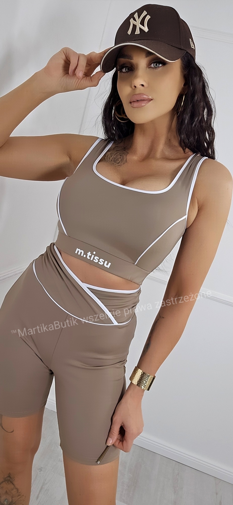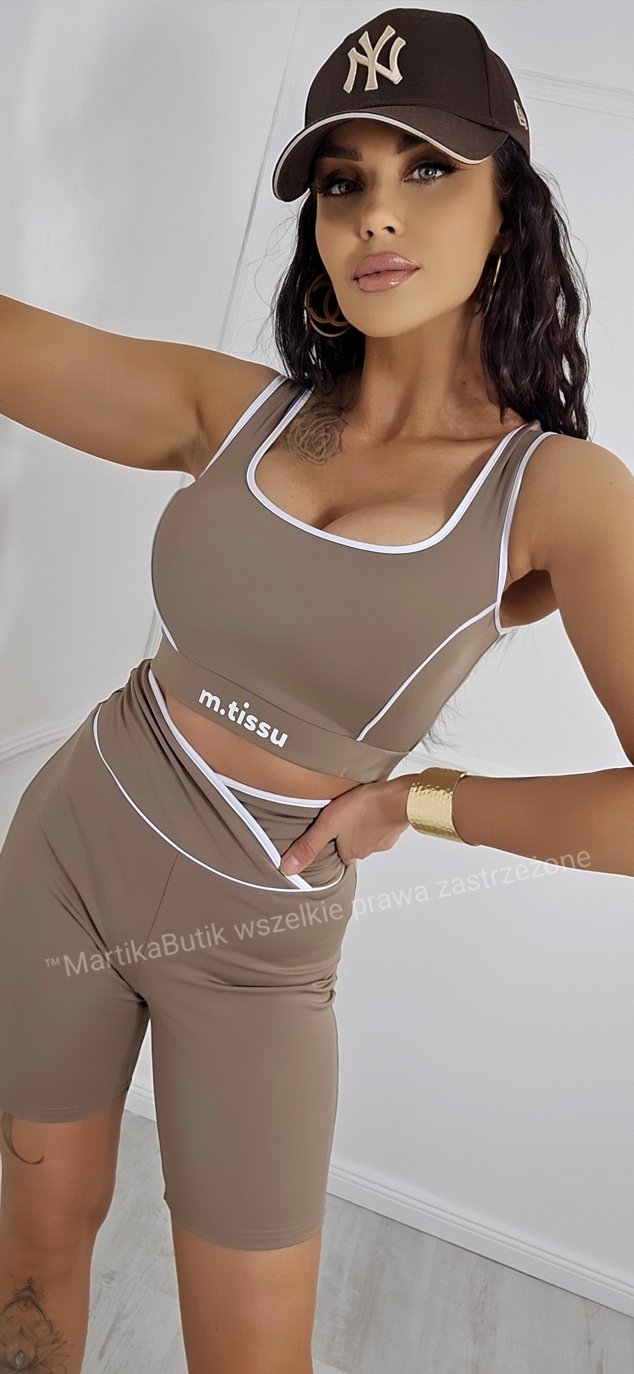 To doskonały wybór na fitness, jogę, spacer czy spotkanie z przyjaciółmi. Komplet świetnie prezentuje się w zestawieniu z masywnymi sneakersami i czapką z daszkiem.