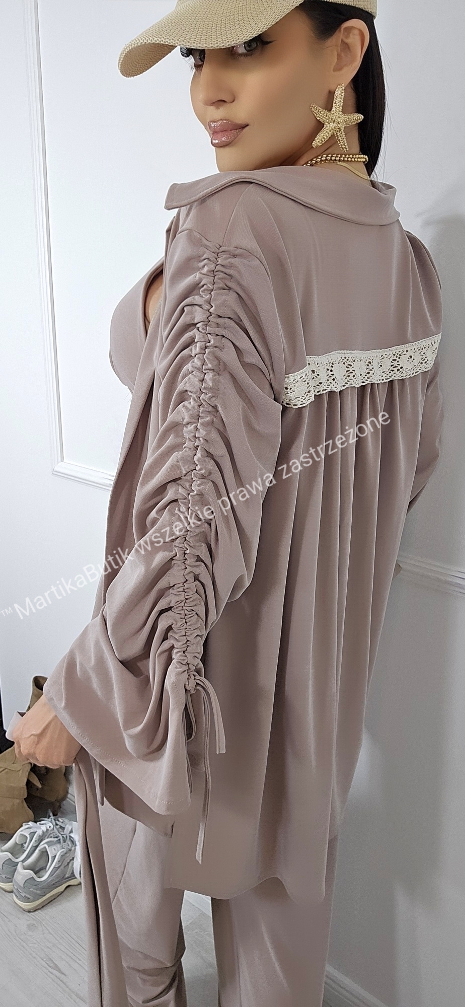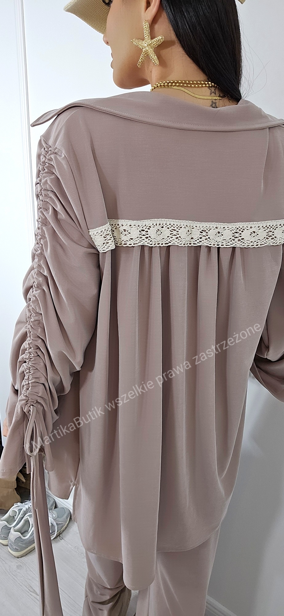 Elegancka Koszula z Marszczonymi Rękawami i Koronkowym Detalem