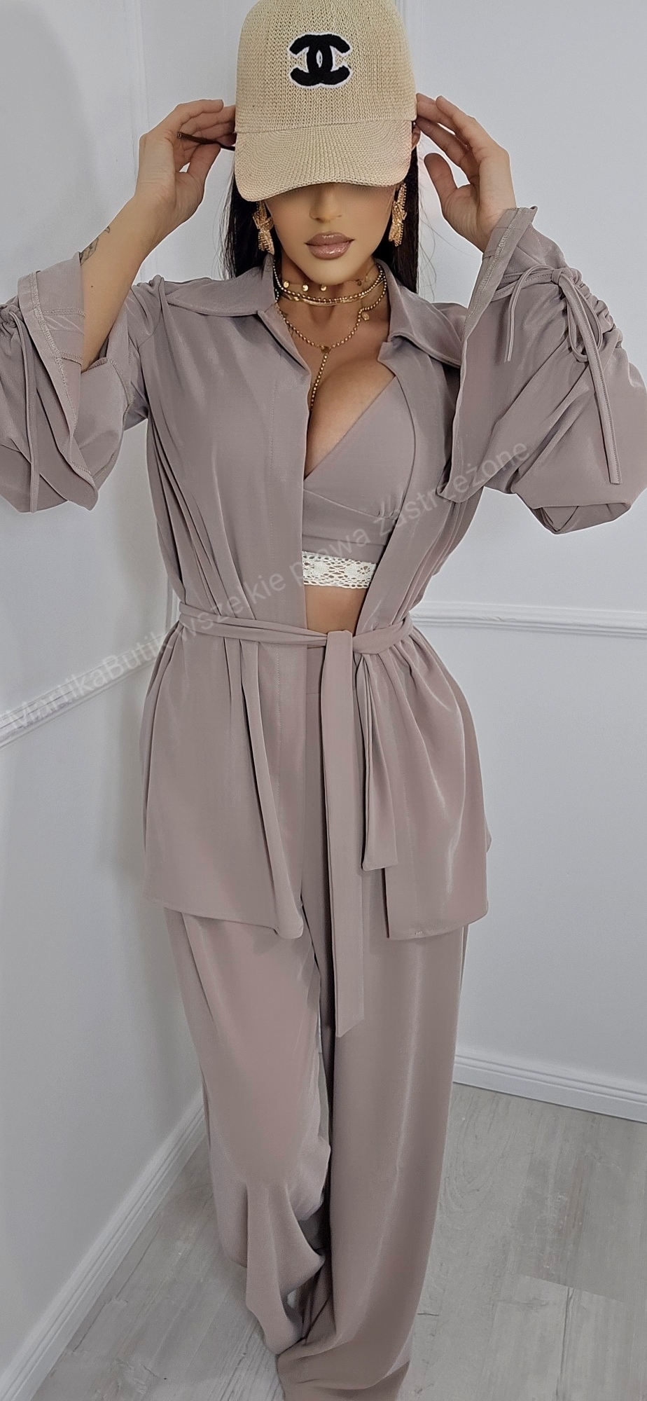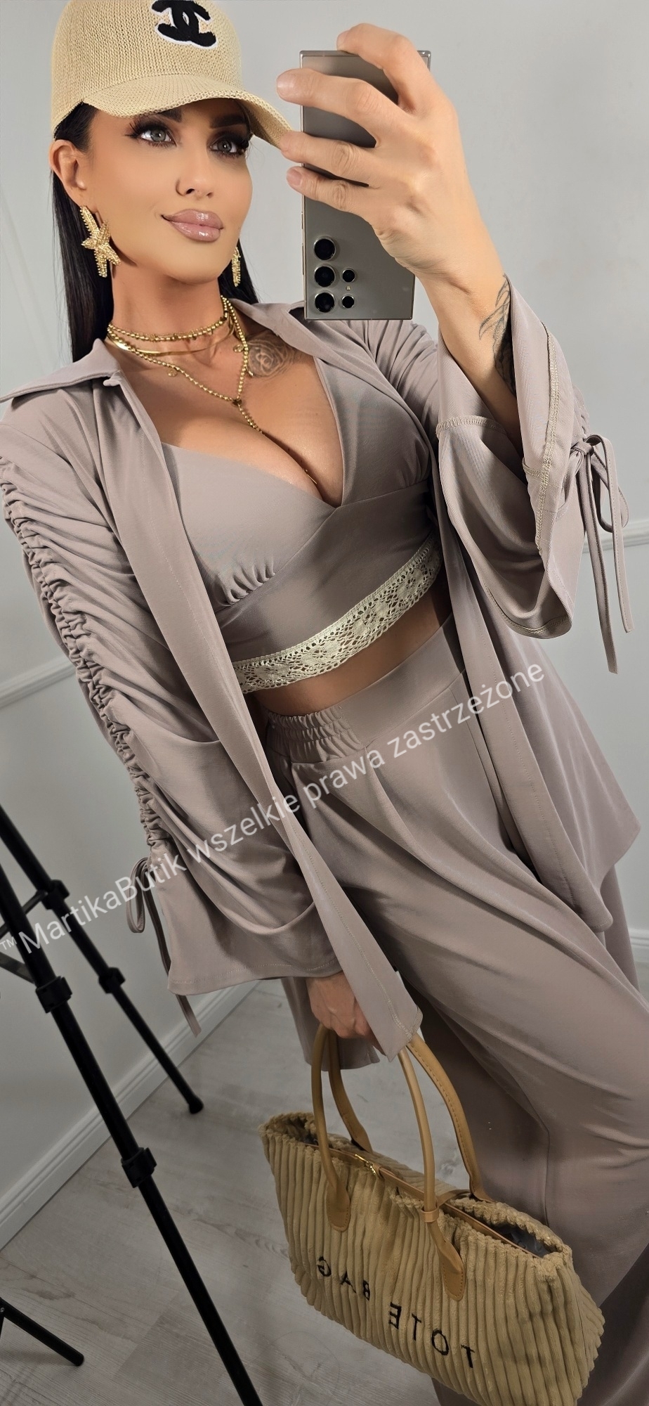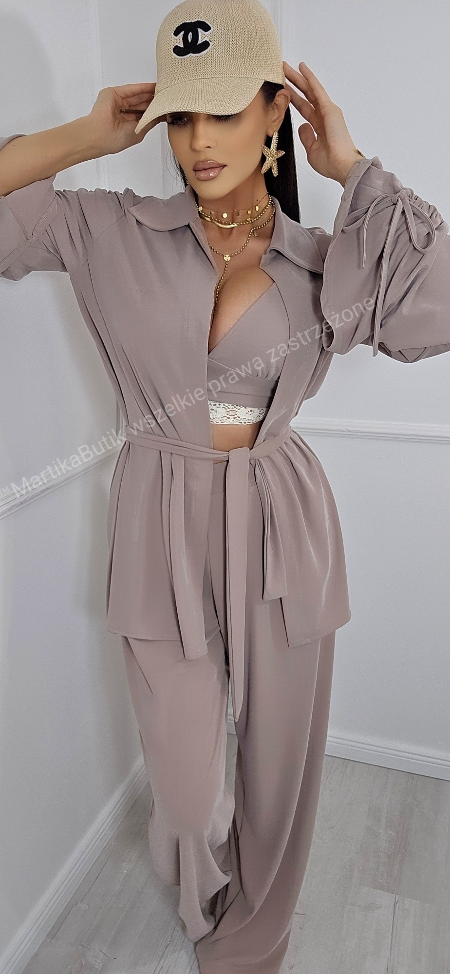 Koszula doskonale prezentuje się w zestawie ze spodniami oraz topem z tej samej serii, tworząc elegancki total look. Możesz ją również nosić do klasycznych jeansów lub białych cygaretek. Zestaw ją ze słomkowym kapeluszem i złotą biżuterią, aby uzyskać look w stylu "effortless chic".