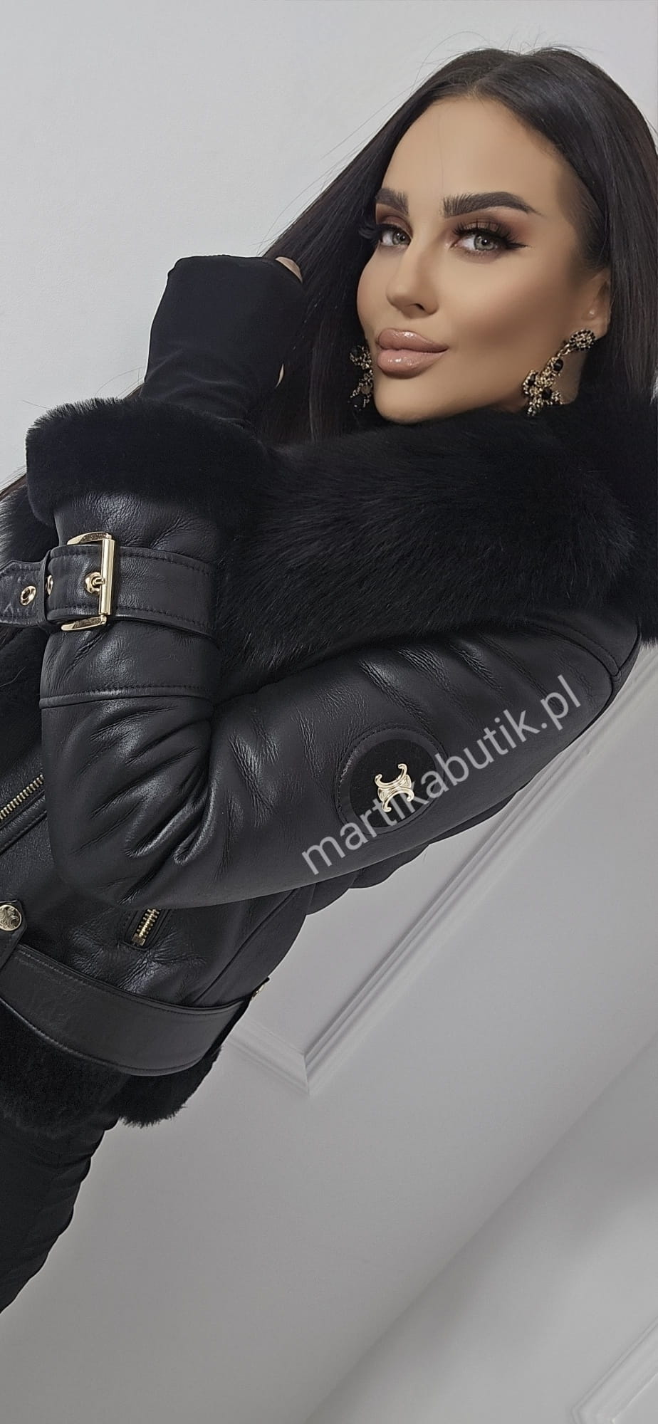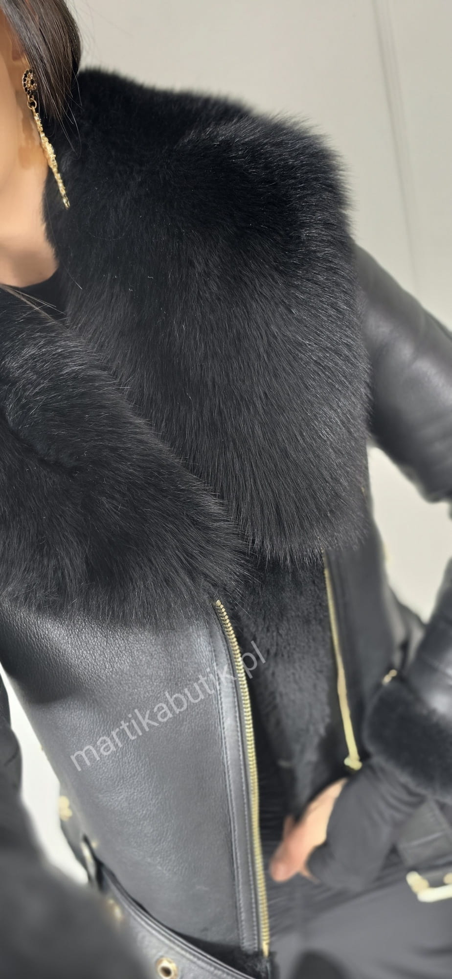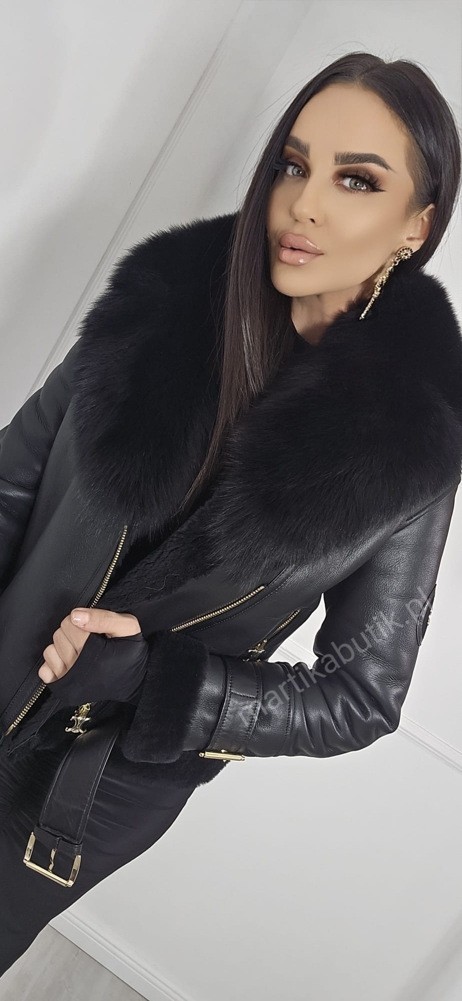 Dopasowany kożuch damski w całości ze skóry jagnięcej naturalnej wraz z kożuchem w połączeniu z czarnym, naturalnym królikiem to luksusowa propozycja w eleganckim wydaniu. Modny, taliowany fason, najwyższa jakość wykonania.