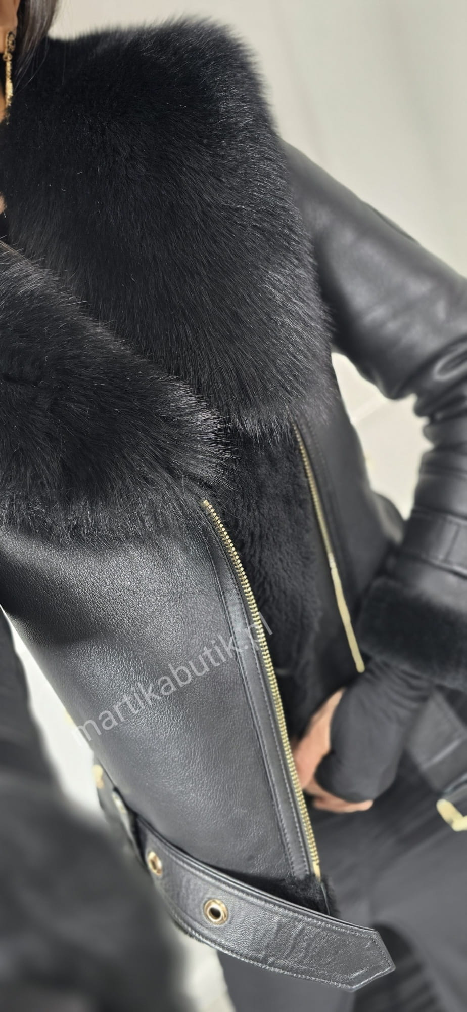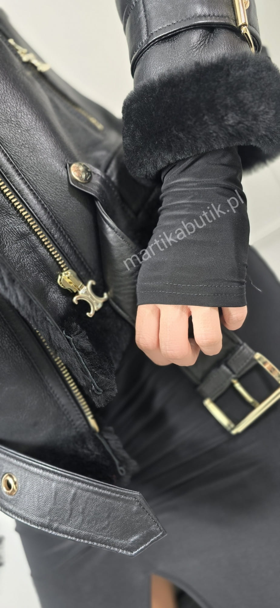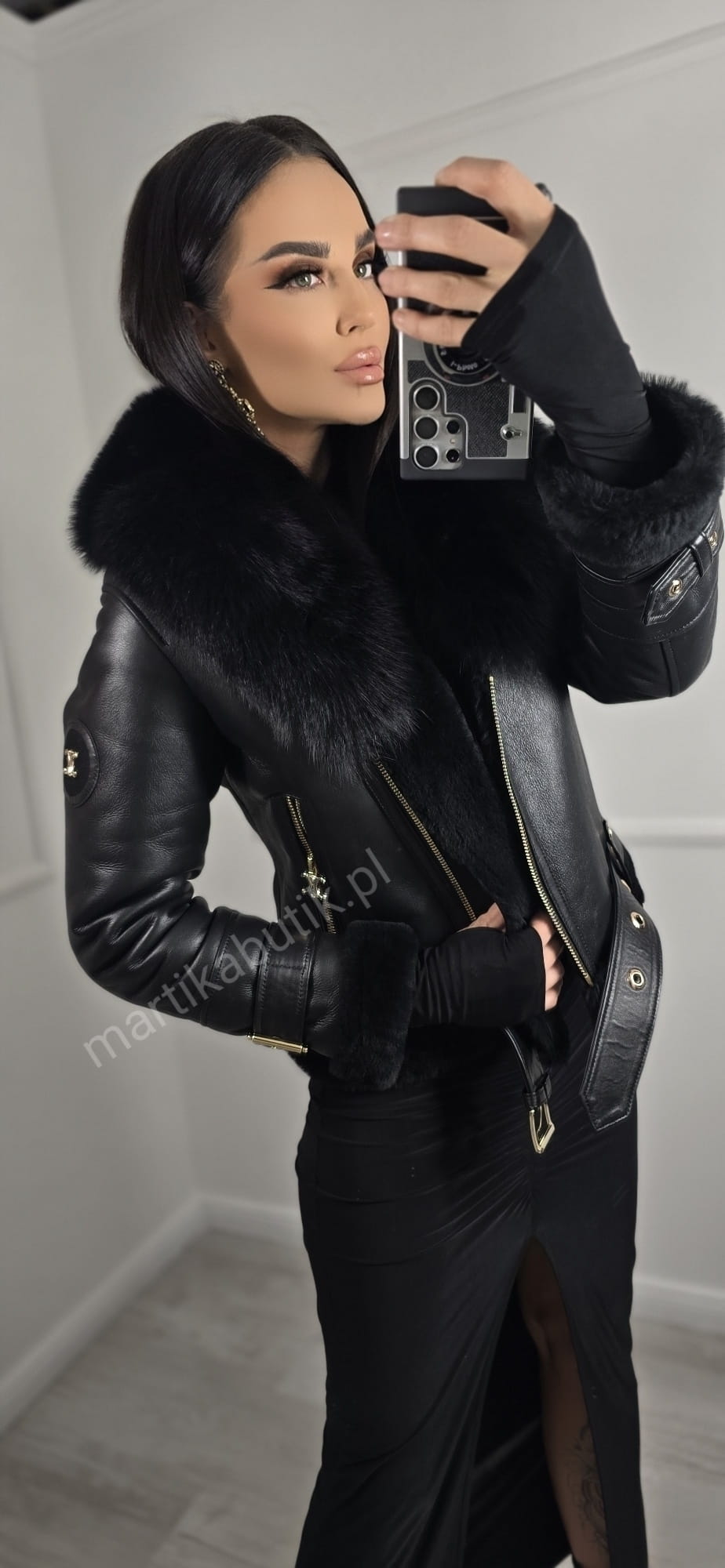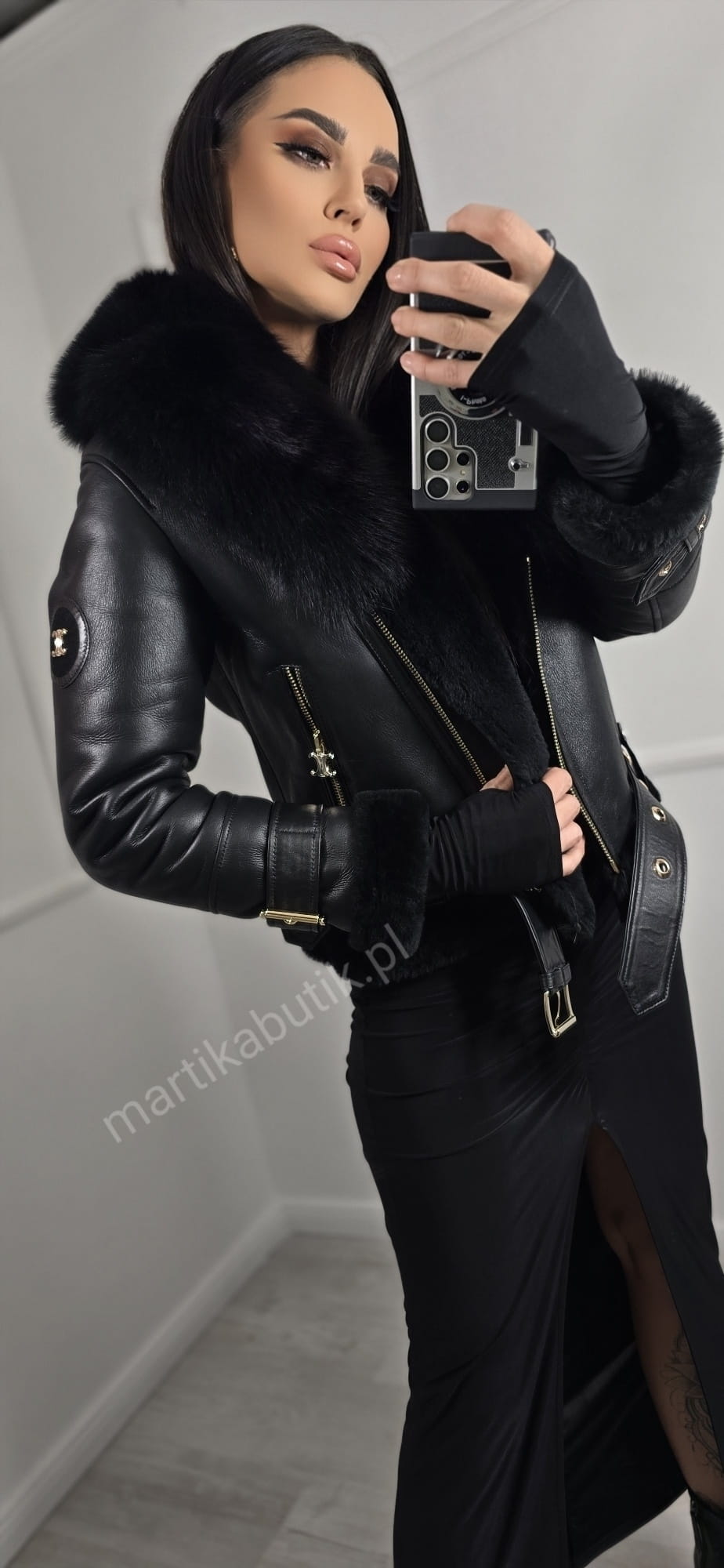 Dopasowany kożuch damski w całości ze skóry jagnięcej naturalnej wraz z kożuchem w połączeniu z czarnym, naturalnym królikiem to luksusowa propozycja w eleganckim wydaniu. Modny, taliowany fason, najwyższa jakość wykonania.