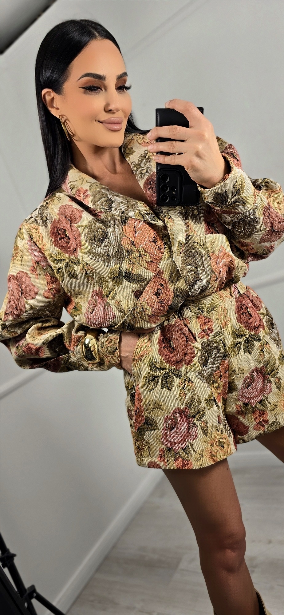 Dół kurtki wykończony wewnątrz gumką co przepięknie roni nam talię i dopasowuje się do Twoich kształtów.