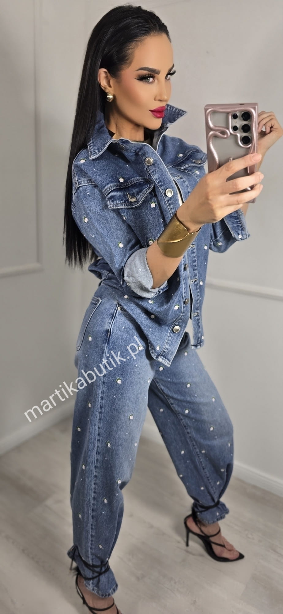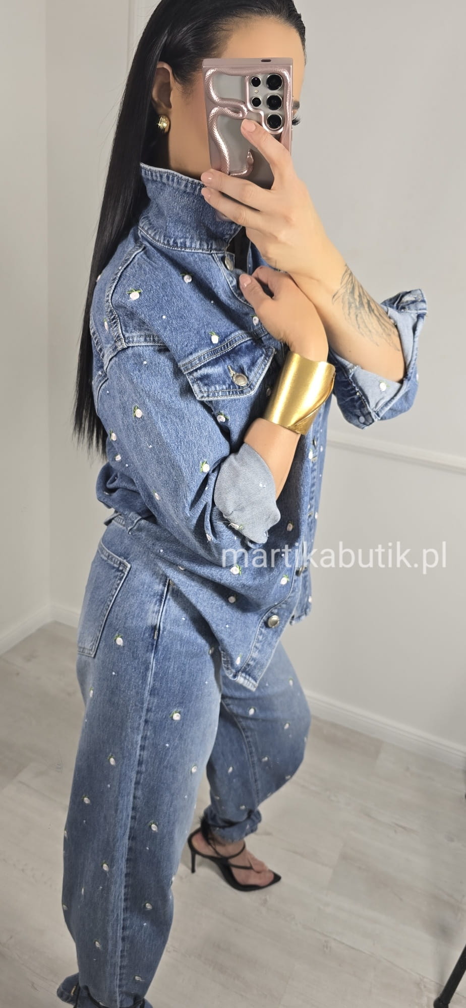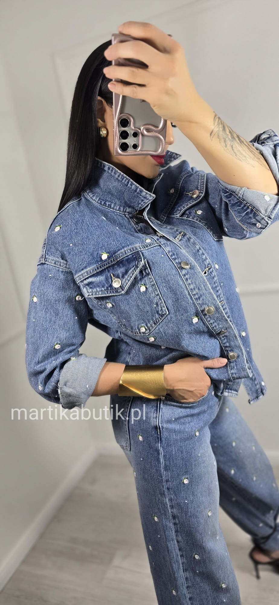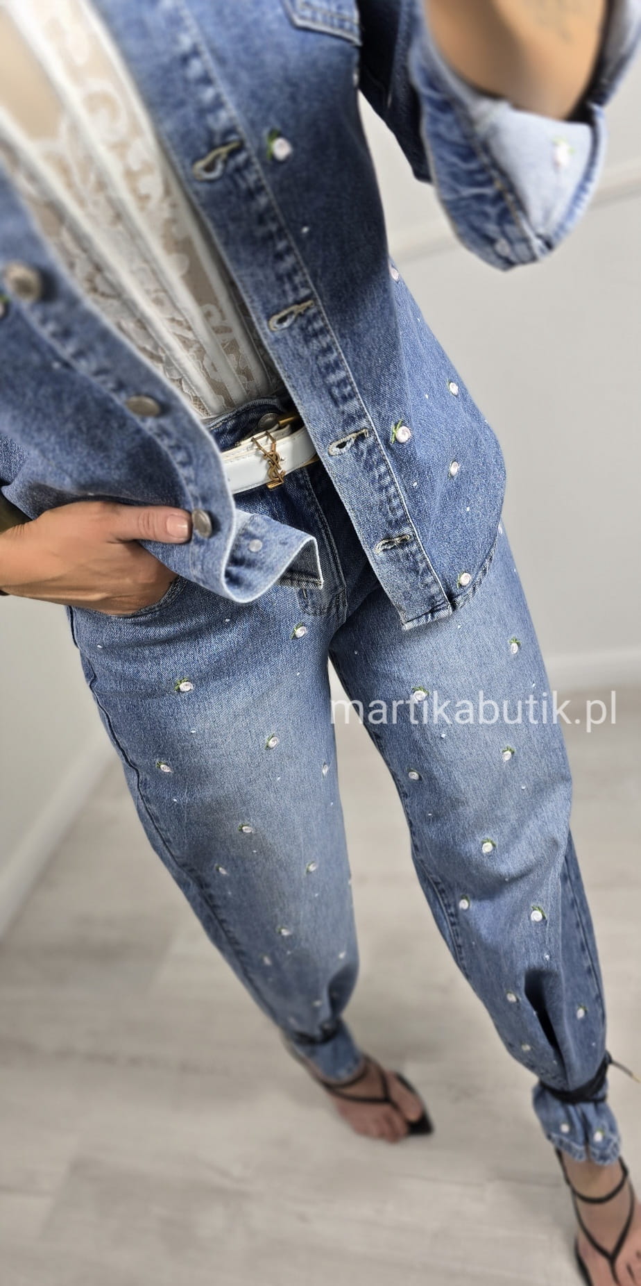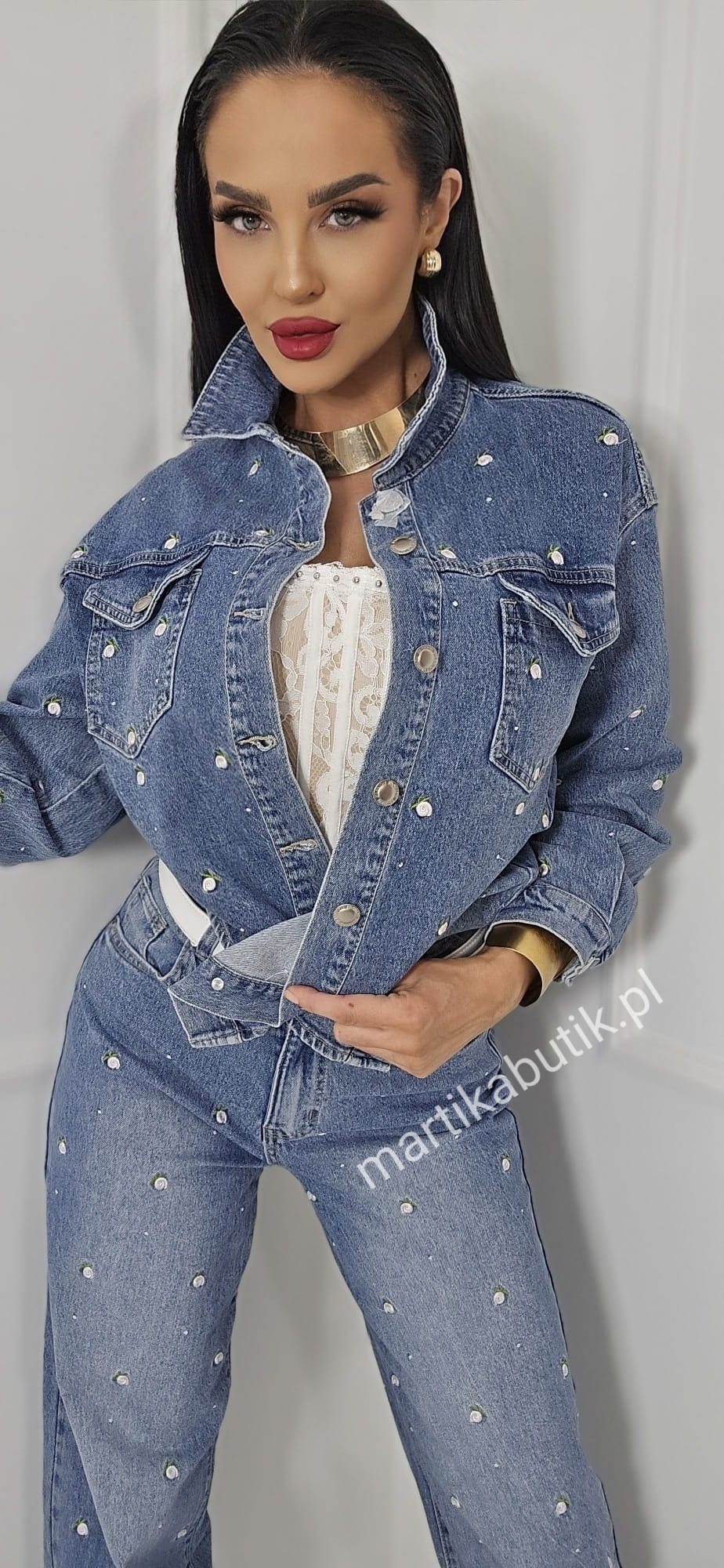 Jeansowa kurtka o fasonie oversize wykonana z najwyższej jakości denimu w haftowane różyczki