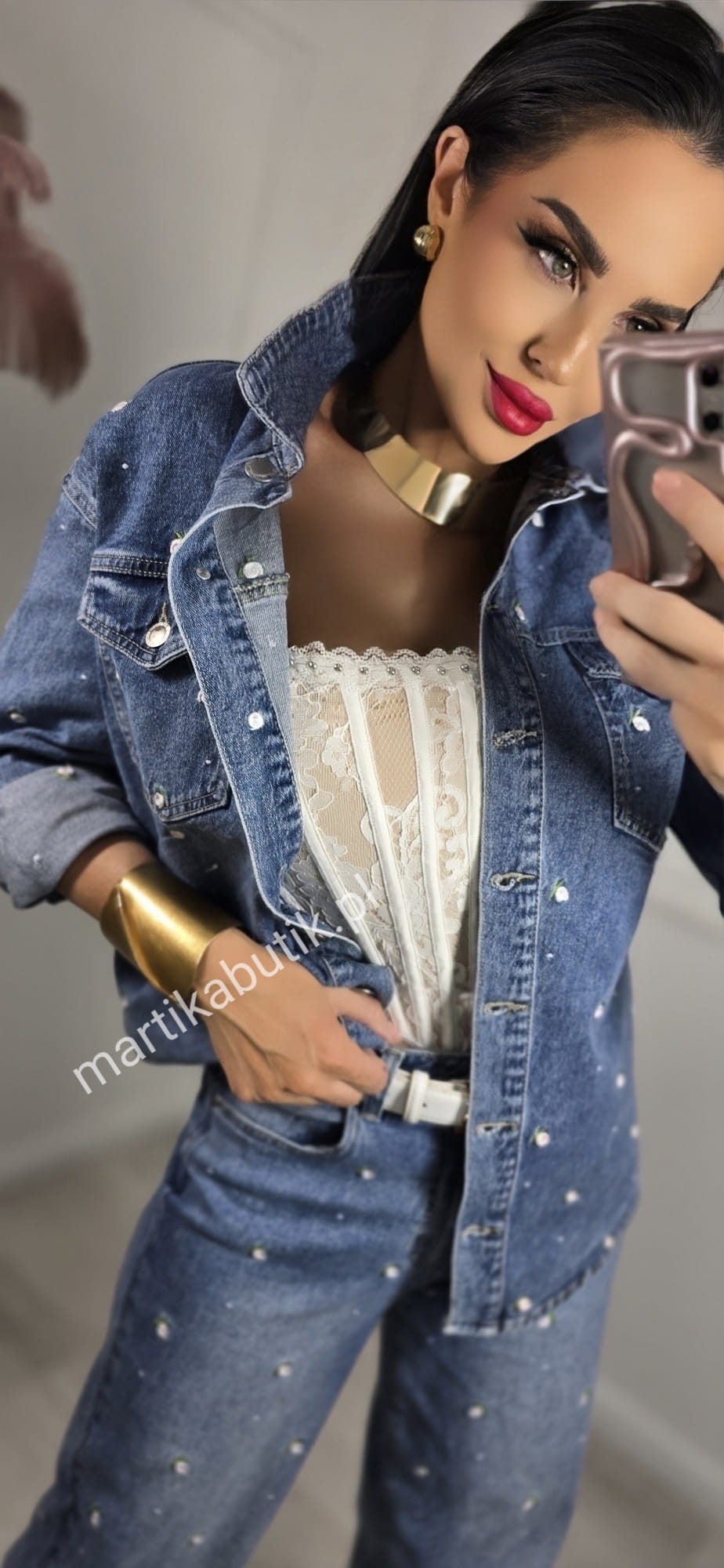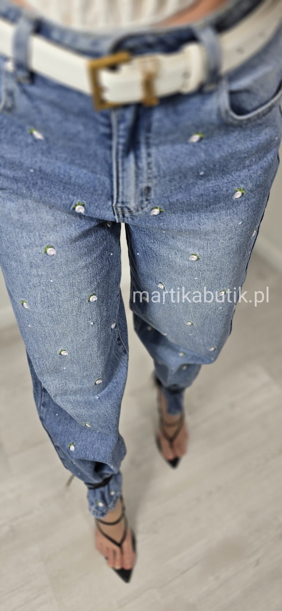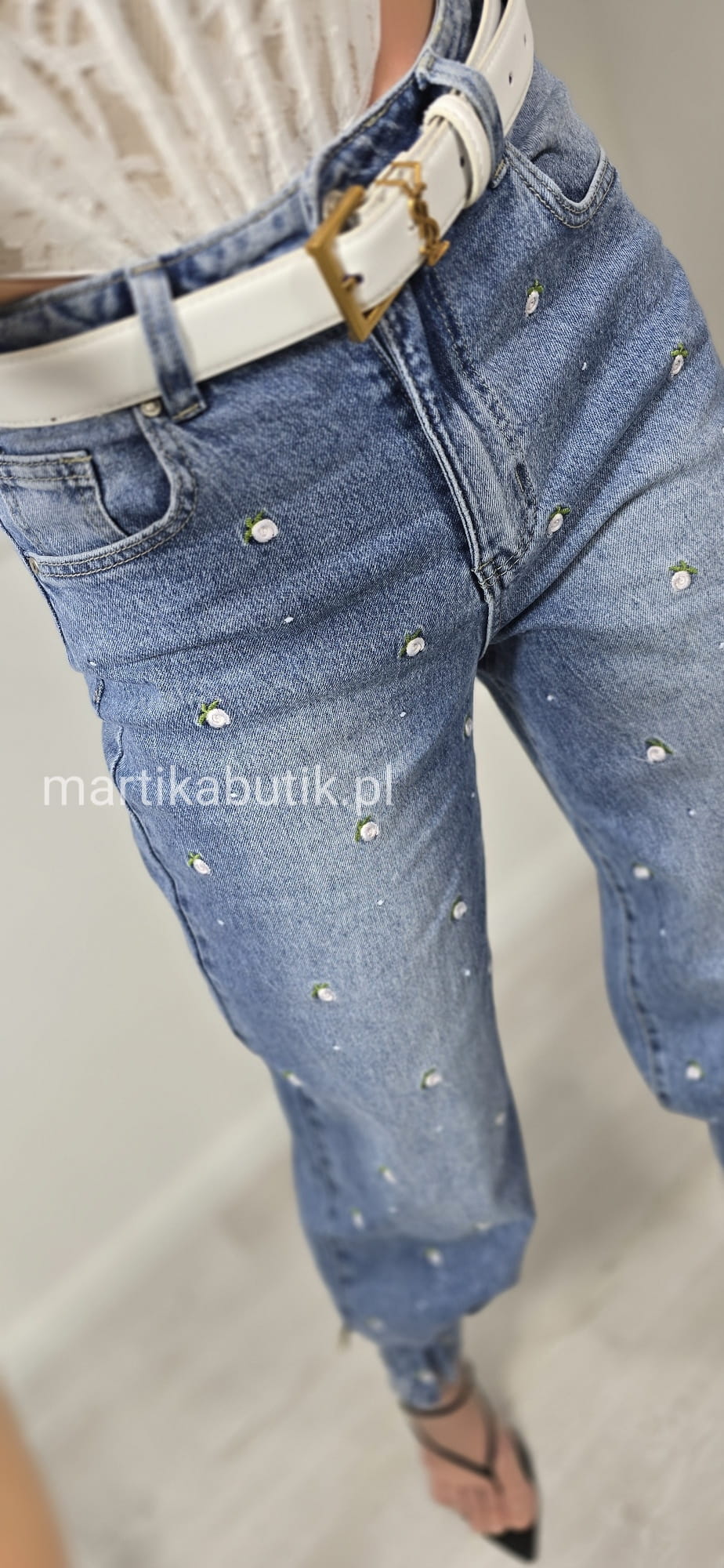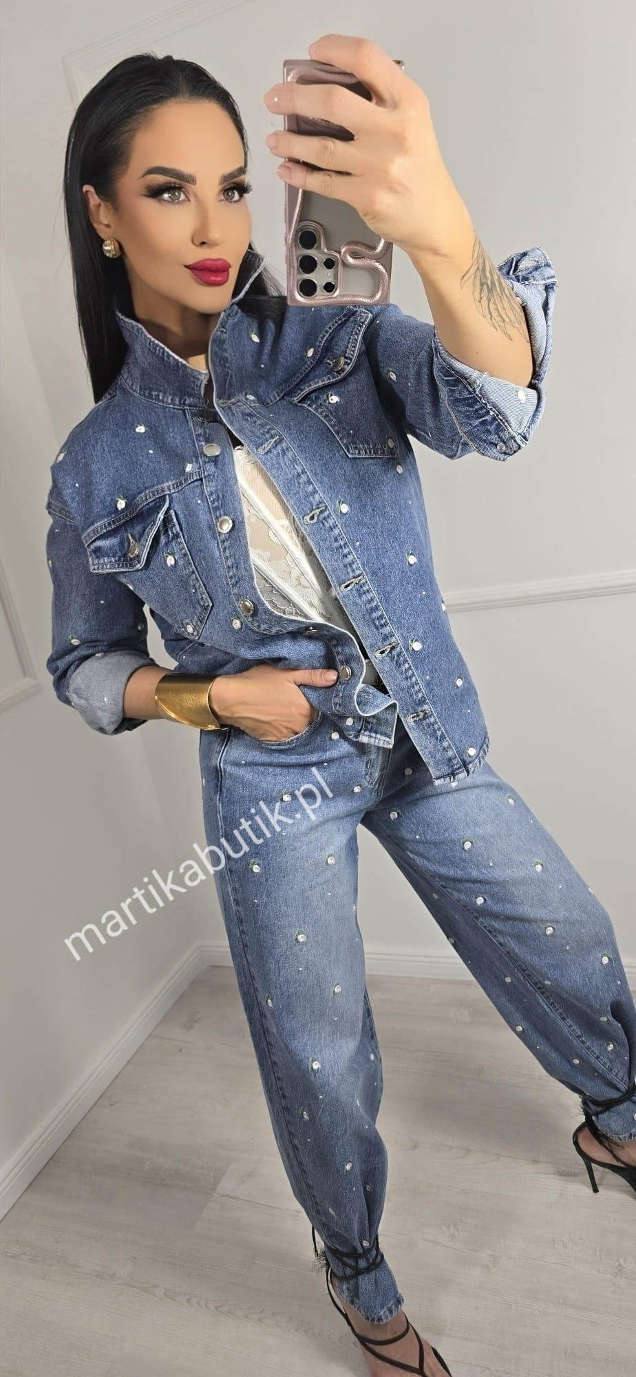 Jeansowa kurtka o fasonie oversize wykonana z najwyższej jakości denimu w haftowane różyczki