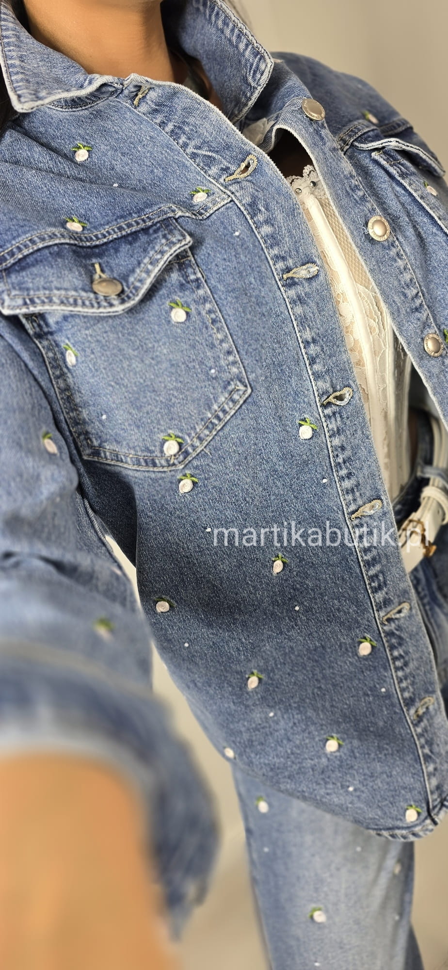 Kurtka jeansowa z haftowanymi różyczkami