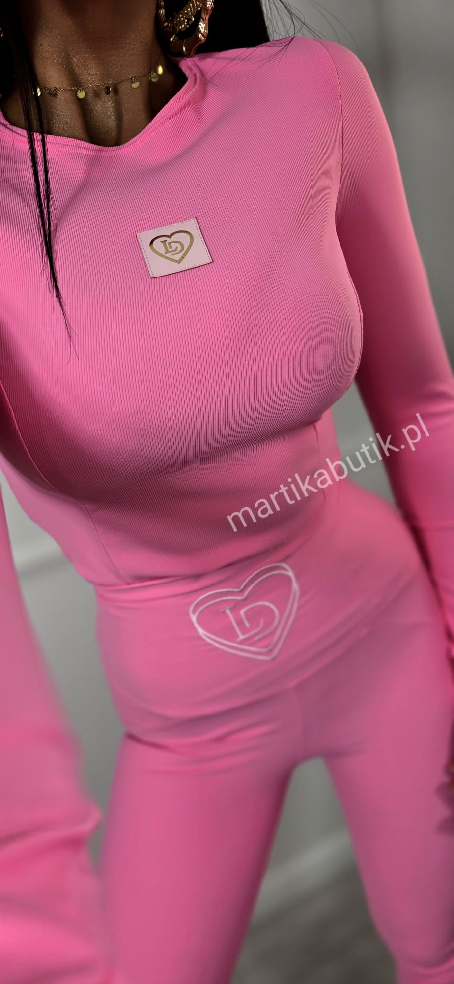 Legginsy prążek serduszko róż barbi