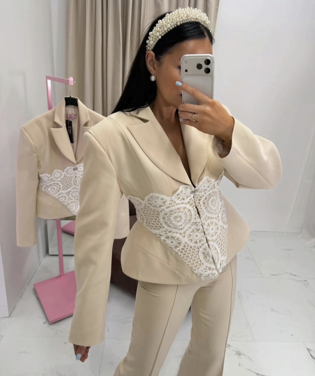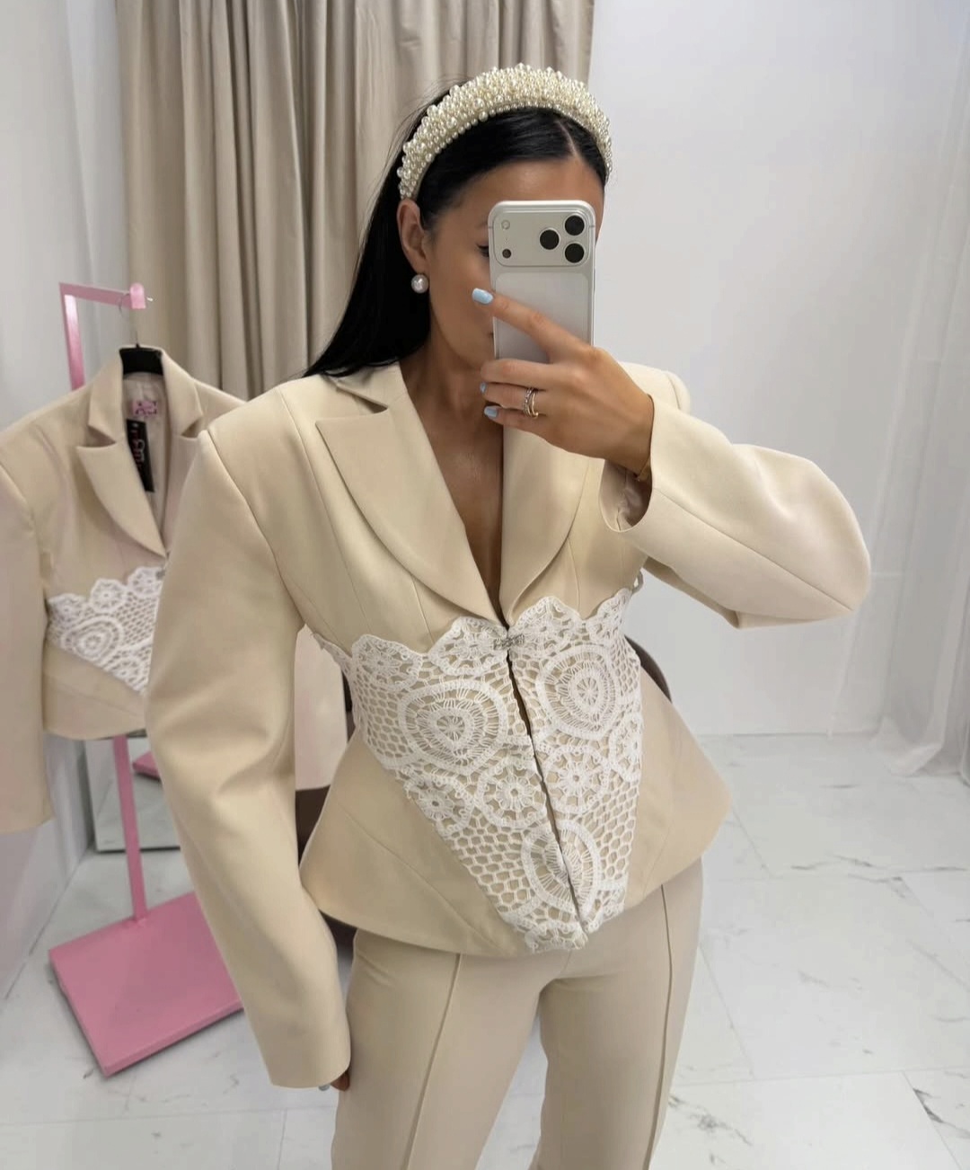 Pleciony żakard na wzór gorsetu zjawiskowo podkreśla talię. Zapinany na haftki. Możesz zestawić ją np z jeansami i stworzyć zjawiskowy codzienny look!