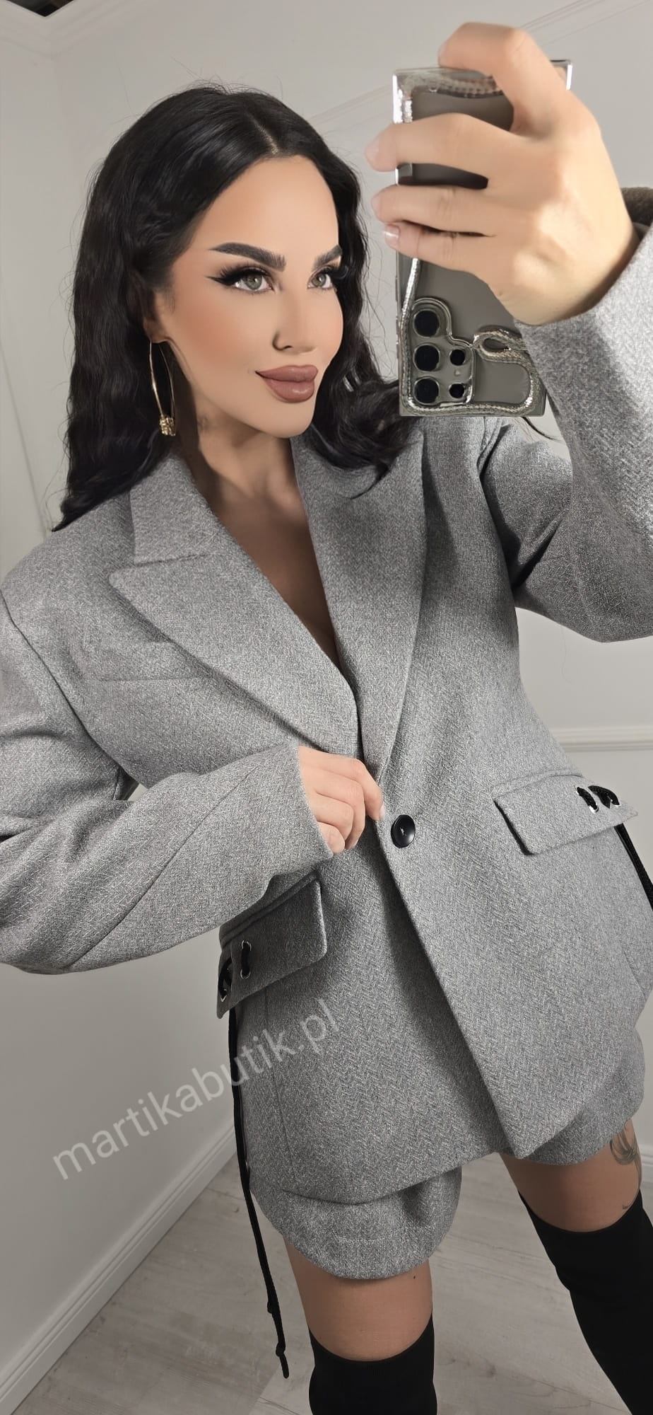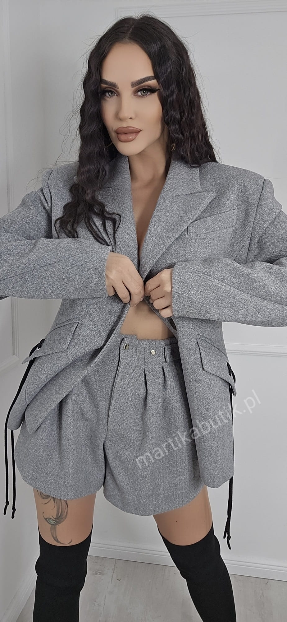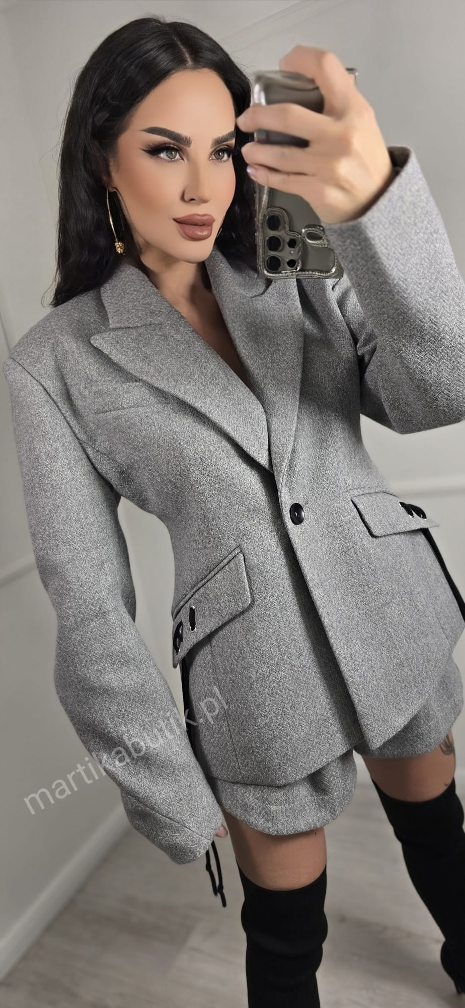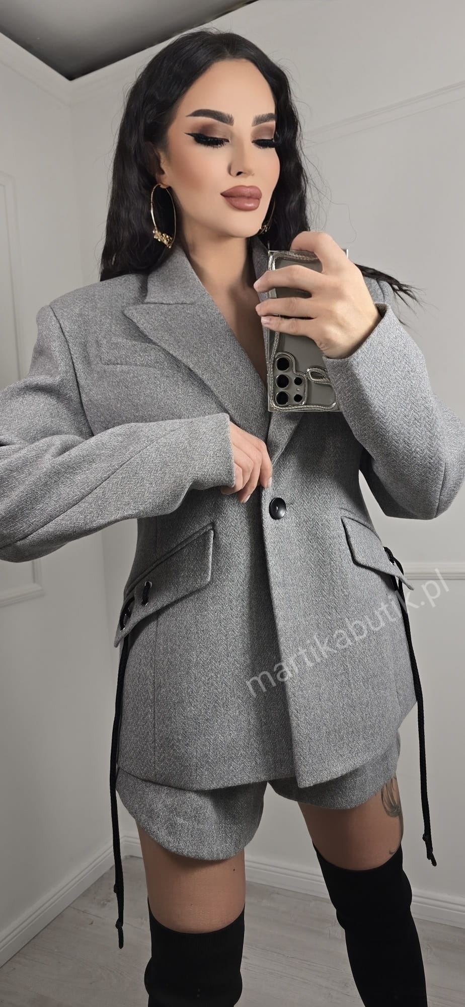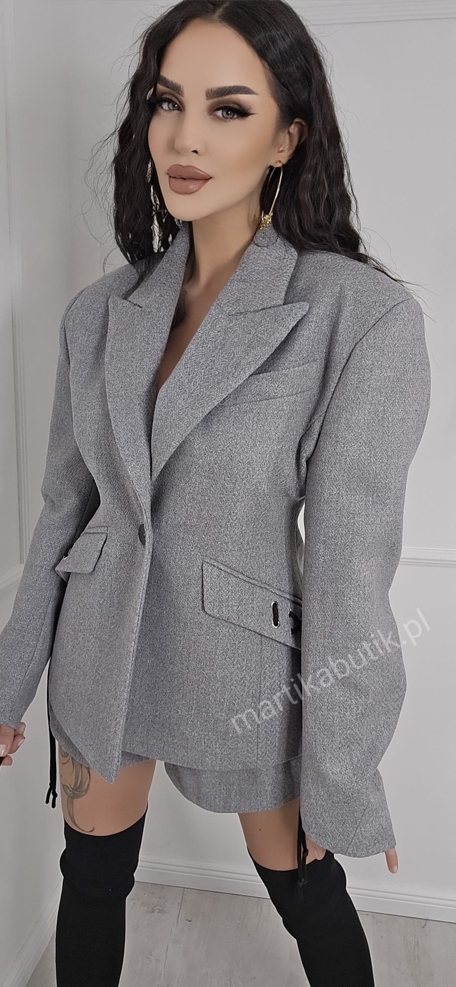 Ten model to doskonała propozycja dla kobiet chcących się wyróżniać. Charakterystyczne wiązanie na plecach wyróżnia ją na tle innych marynarek.