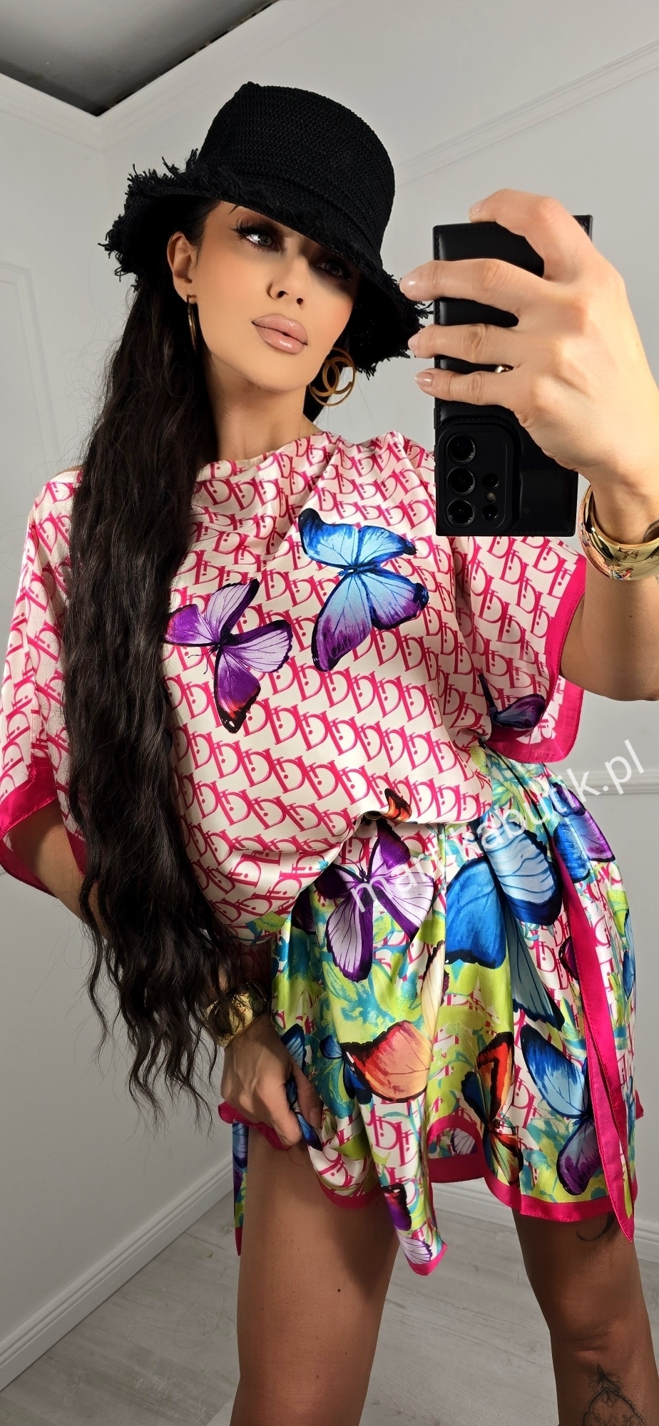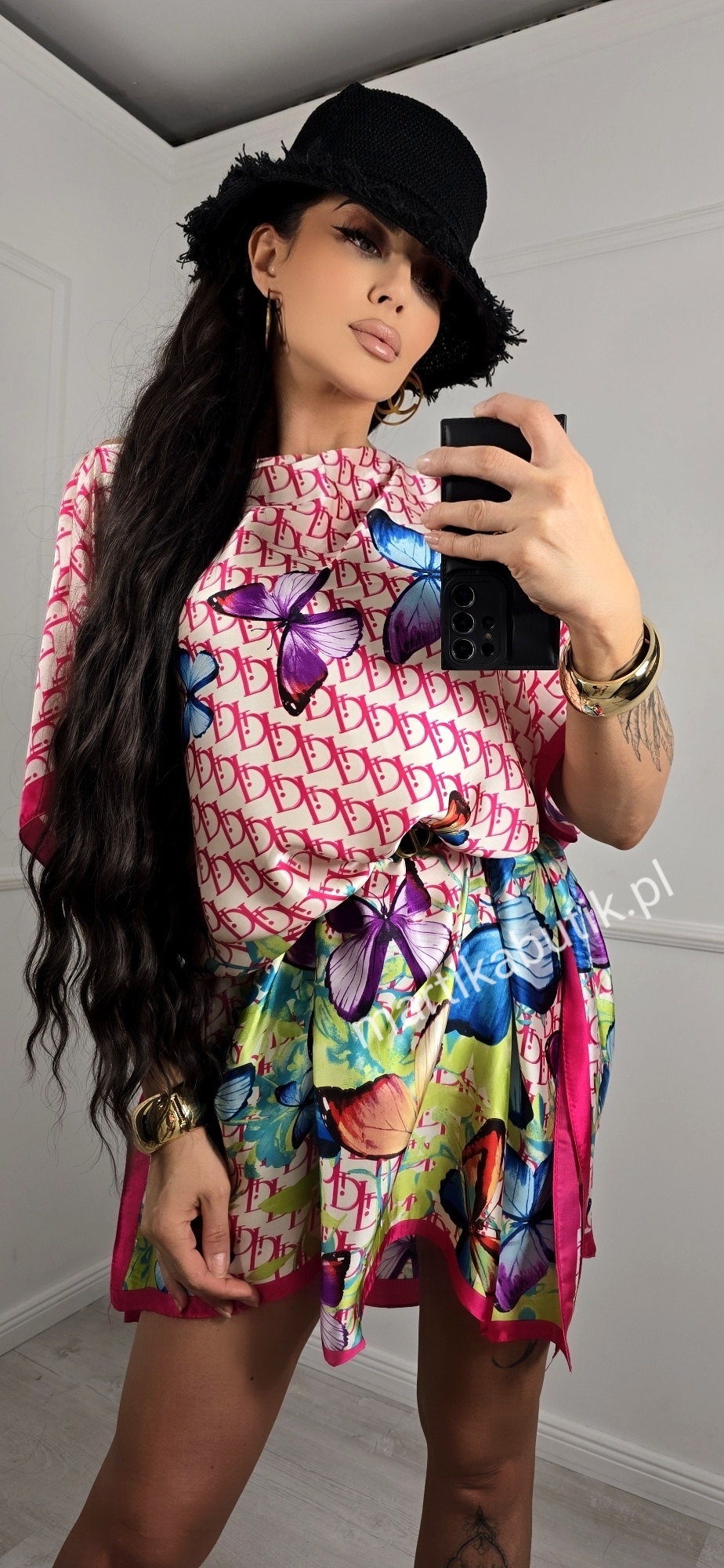 Multifunkcyjne jedwabne ponczo apaszka fuksja