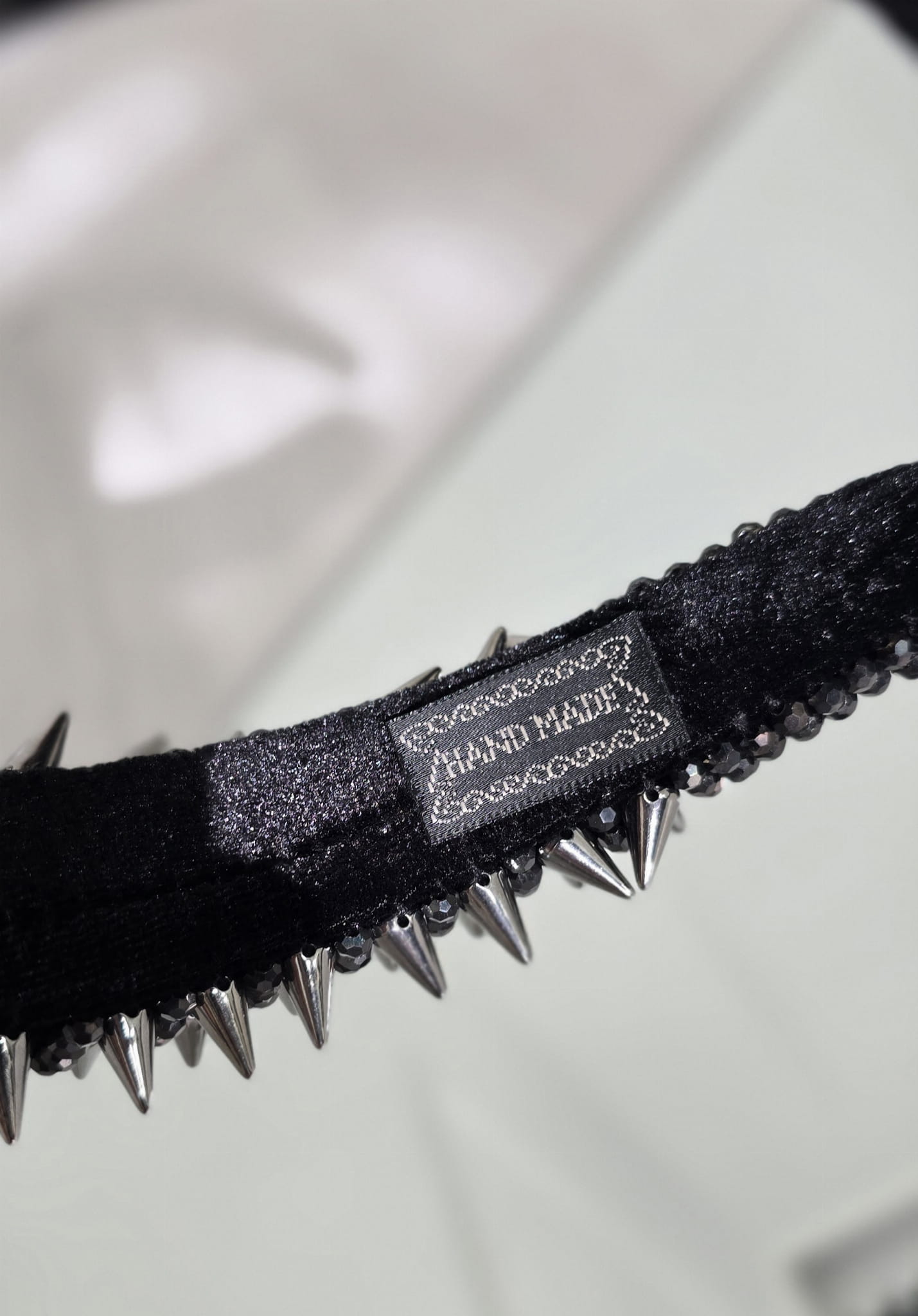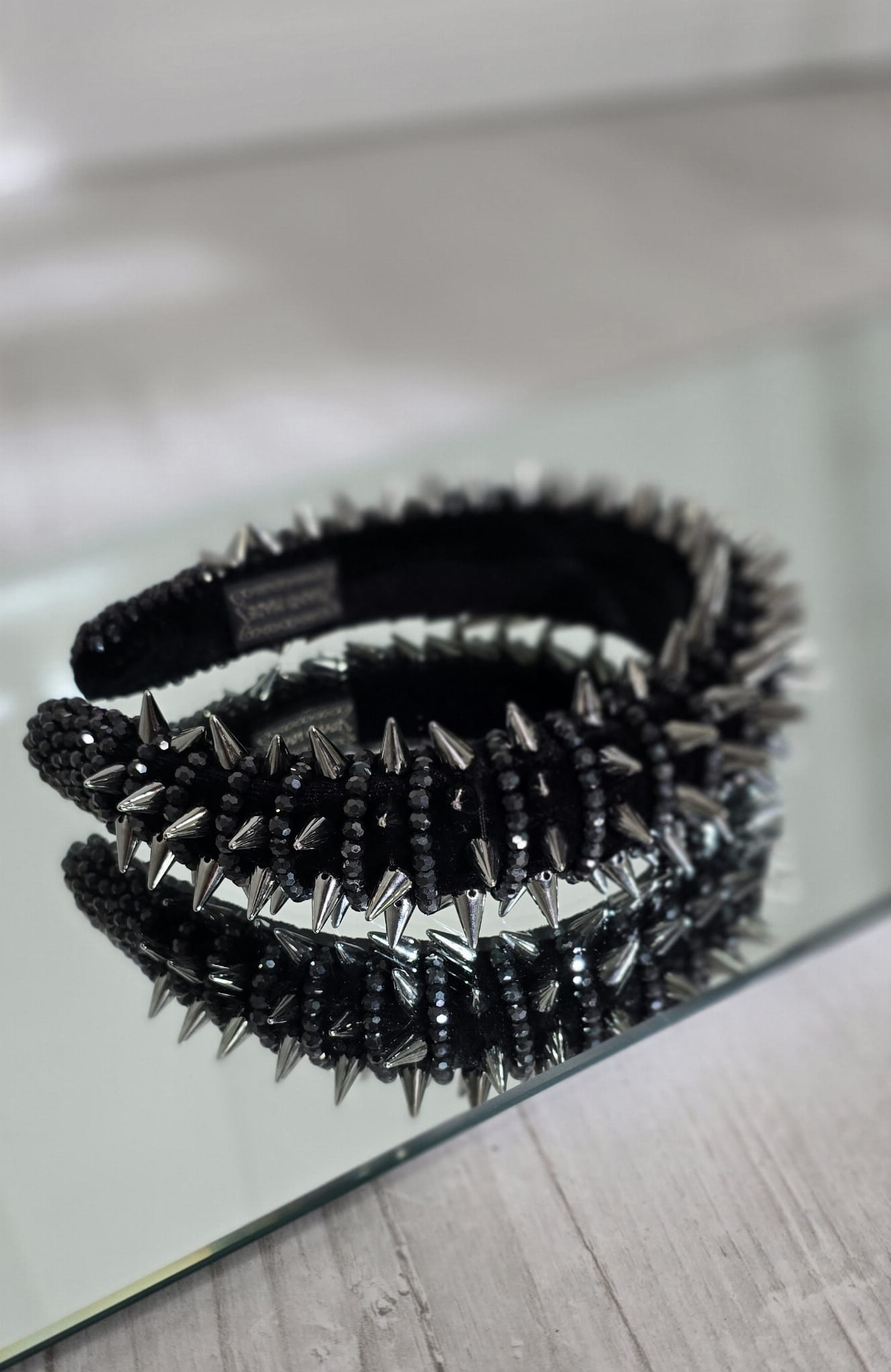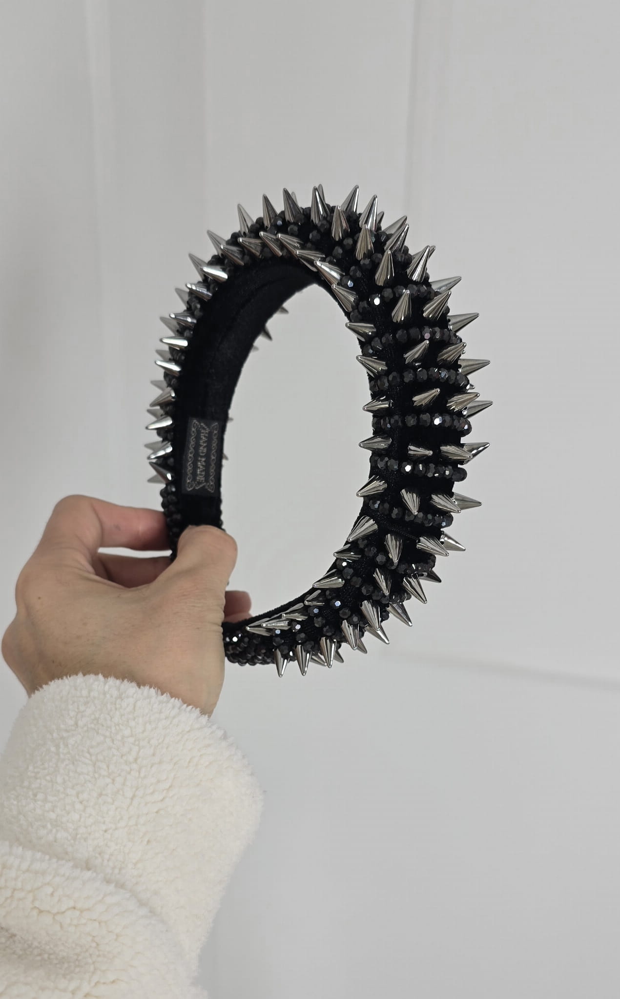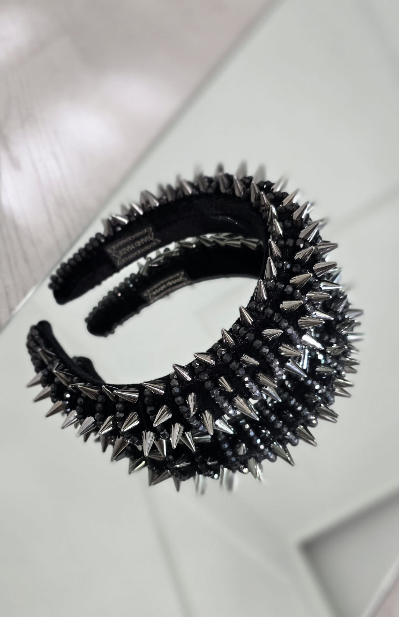 Ręcznie robiona opaska do włosów z ręcznie przyszywanymi ćwiekami oraz cyrkoniami. Najwyższa jakość wykonania. Akcesoria do włosów nie podlegają zwrotowi.