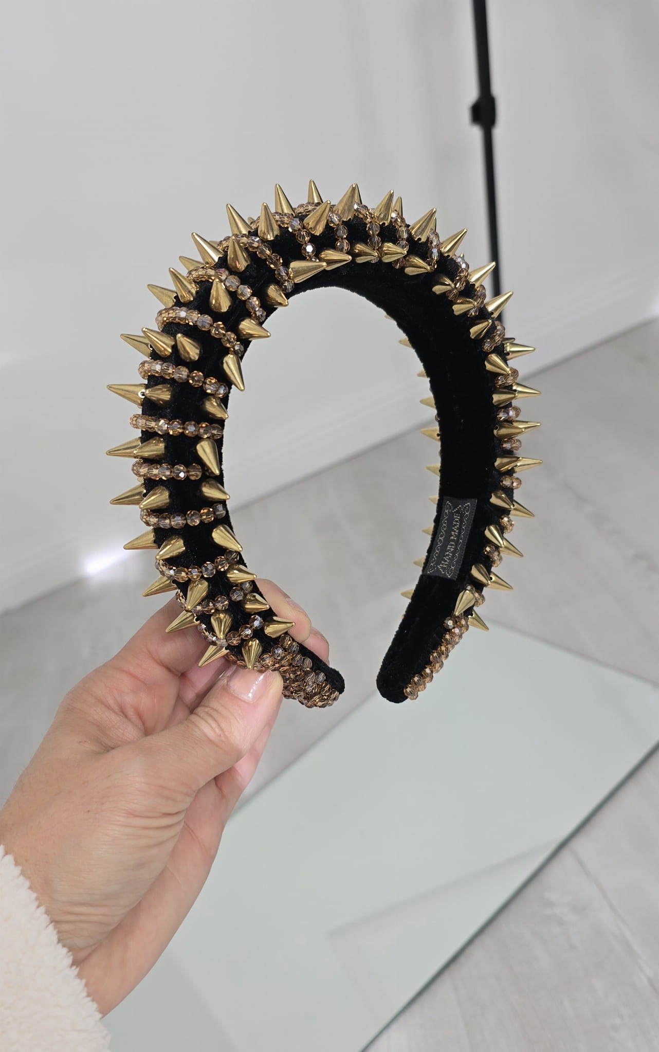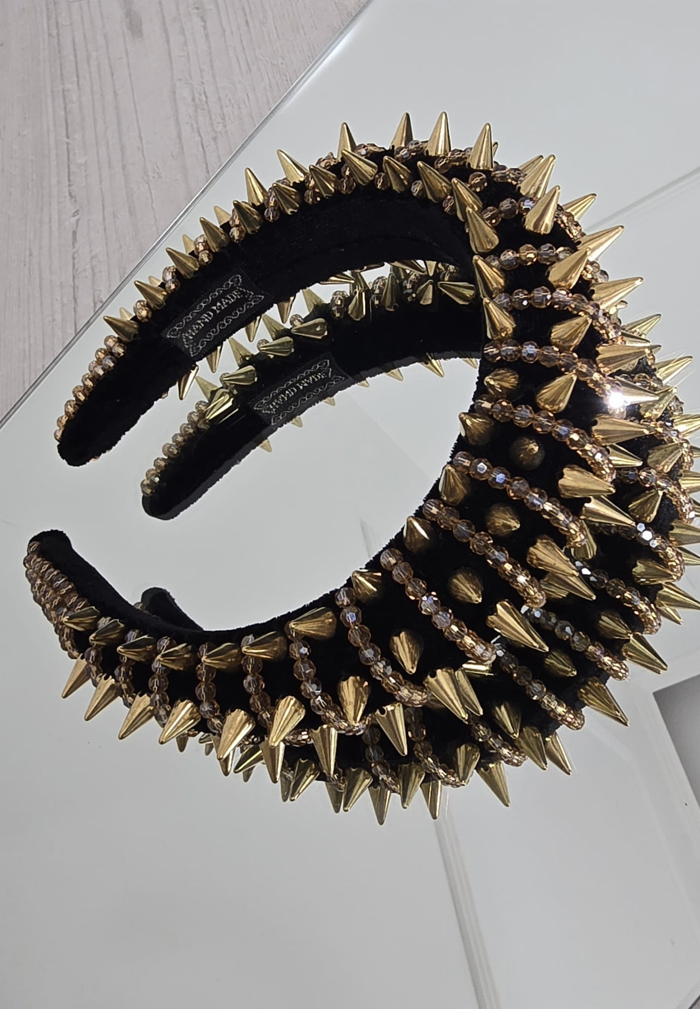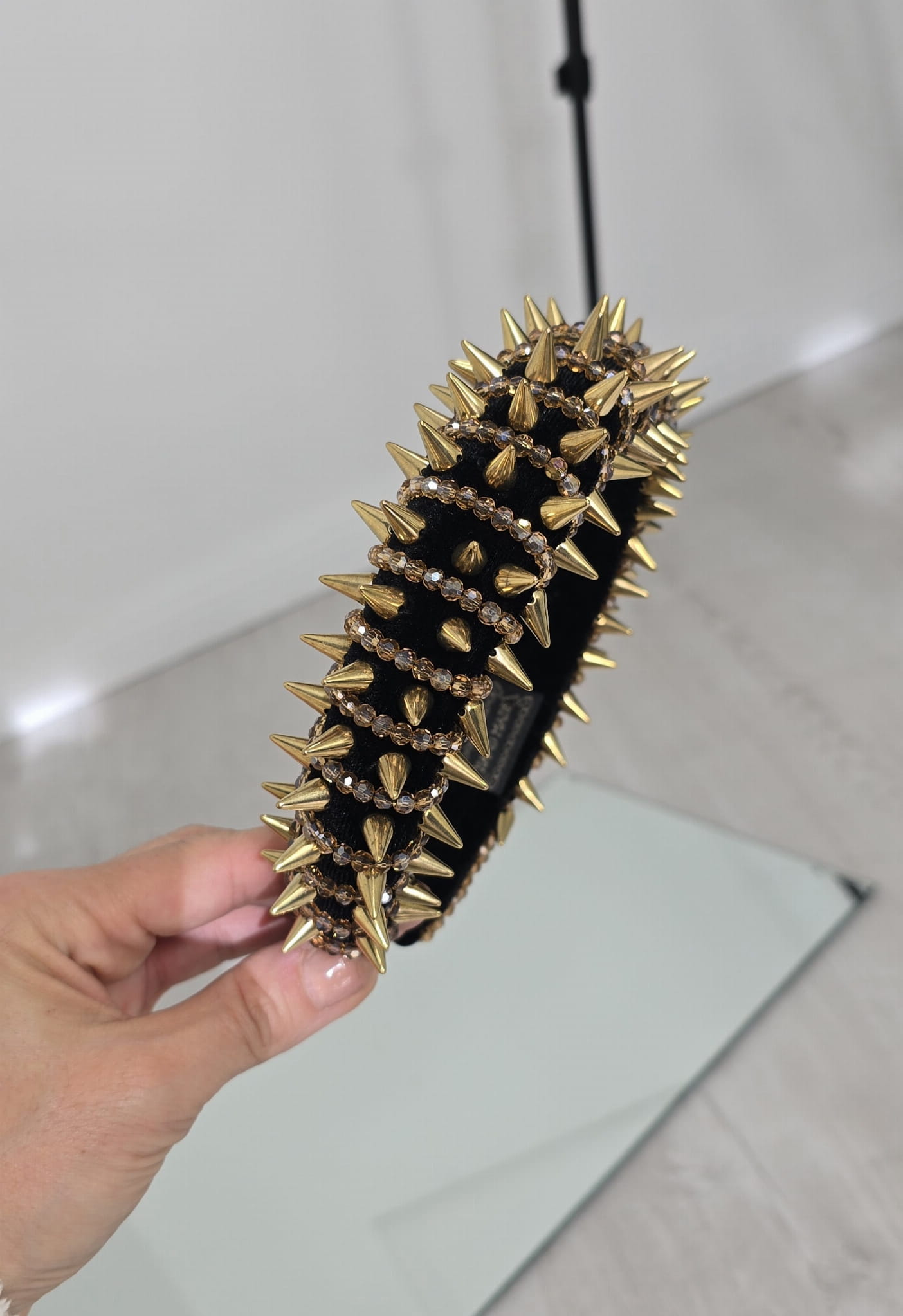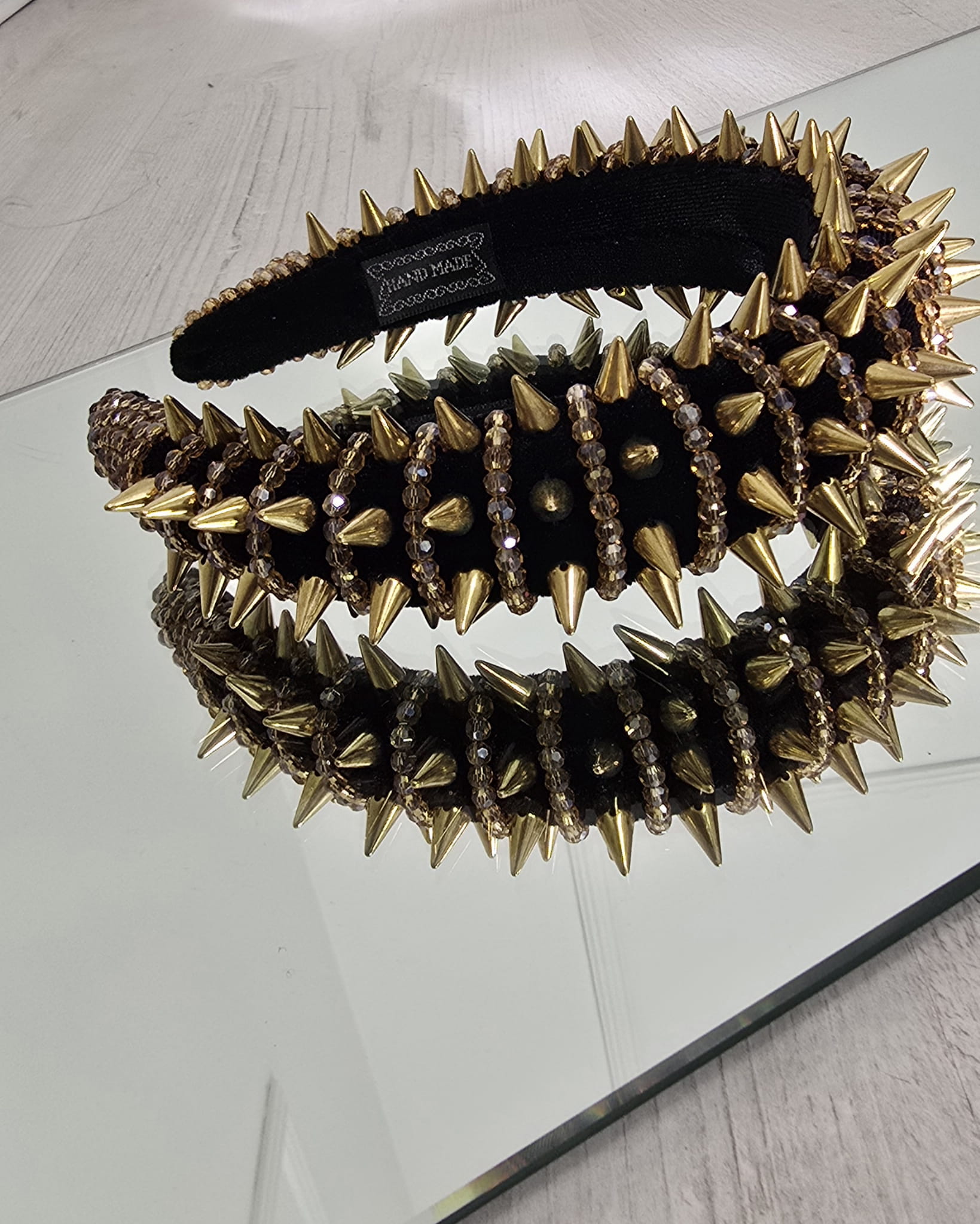 Ręcznie robiona opaska do włosów z ręcznie przyszywanymi ćwiekami oraz cyrkoniami. Najwyższa jakość wykonania. Akcesoria do włosów nie podlegają zwrotowi.