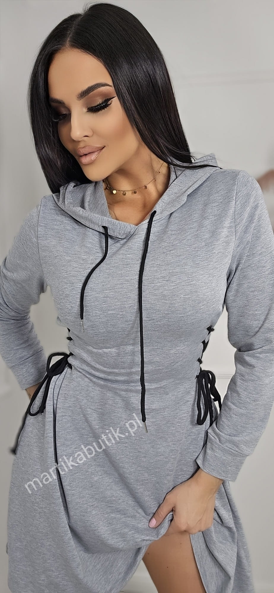 Sukienka z kapturem wykonana z bardzo komfortowego materiału dresowego.