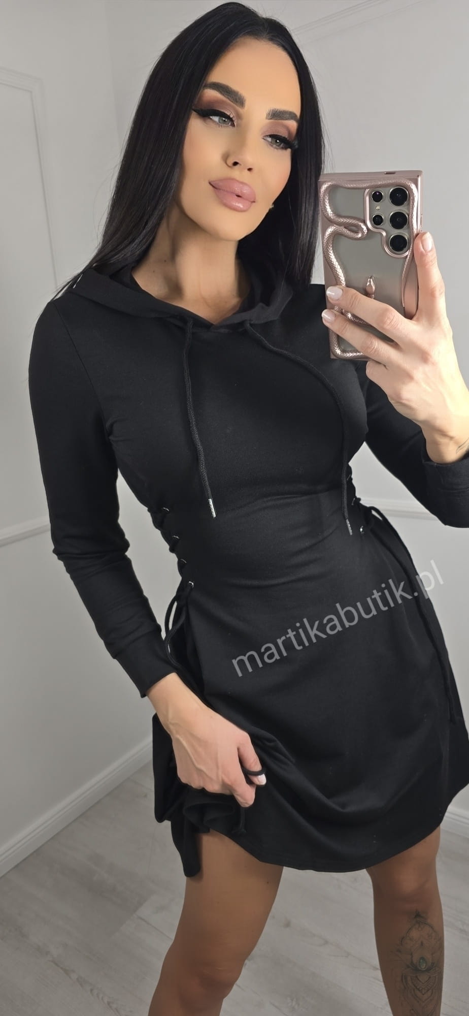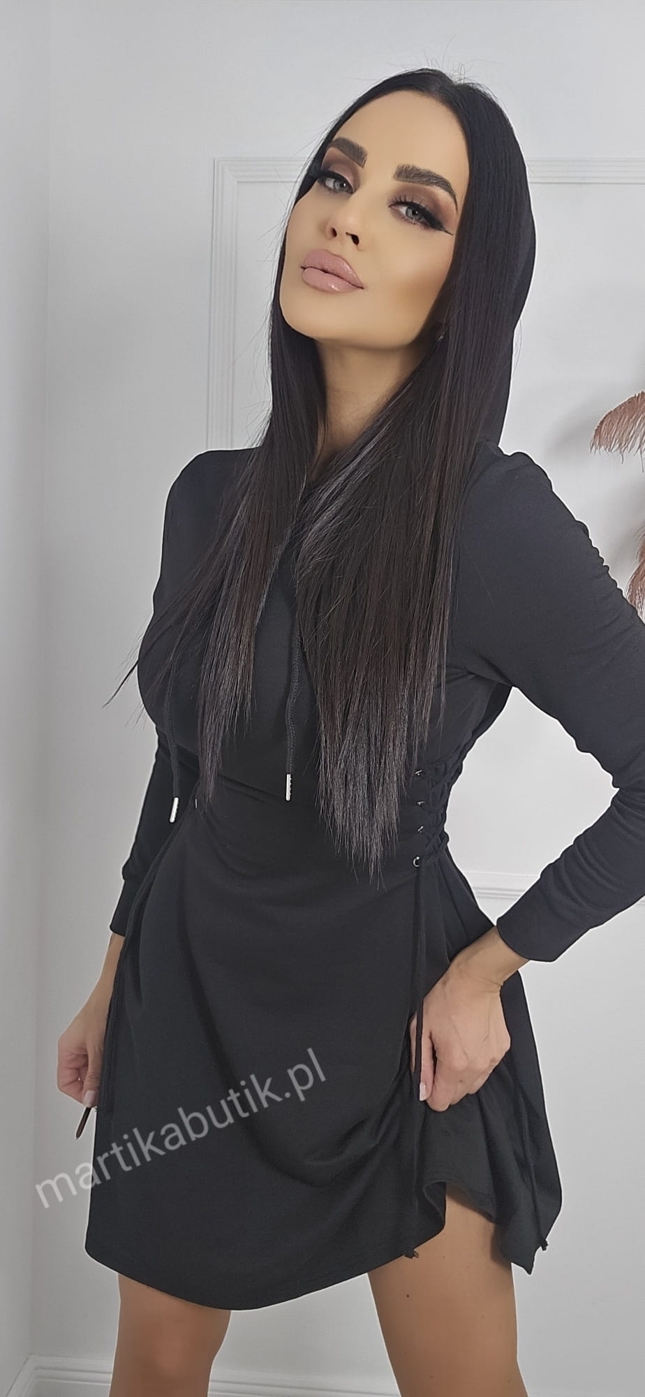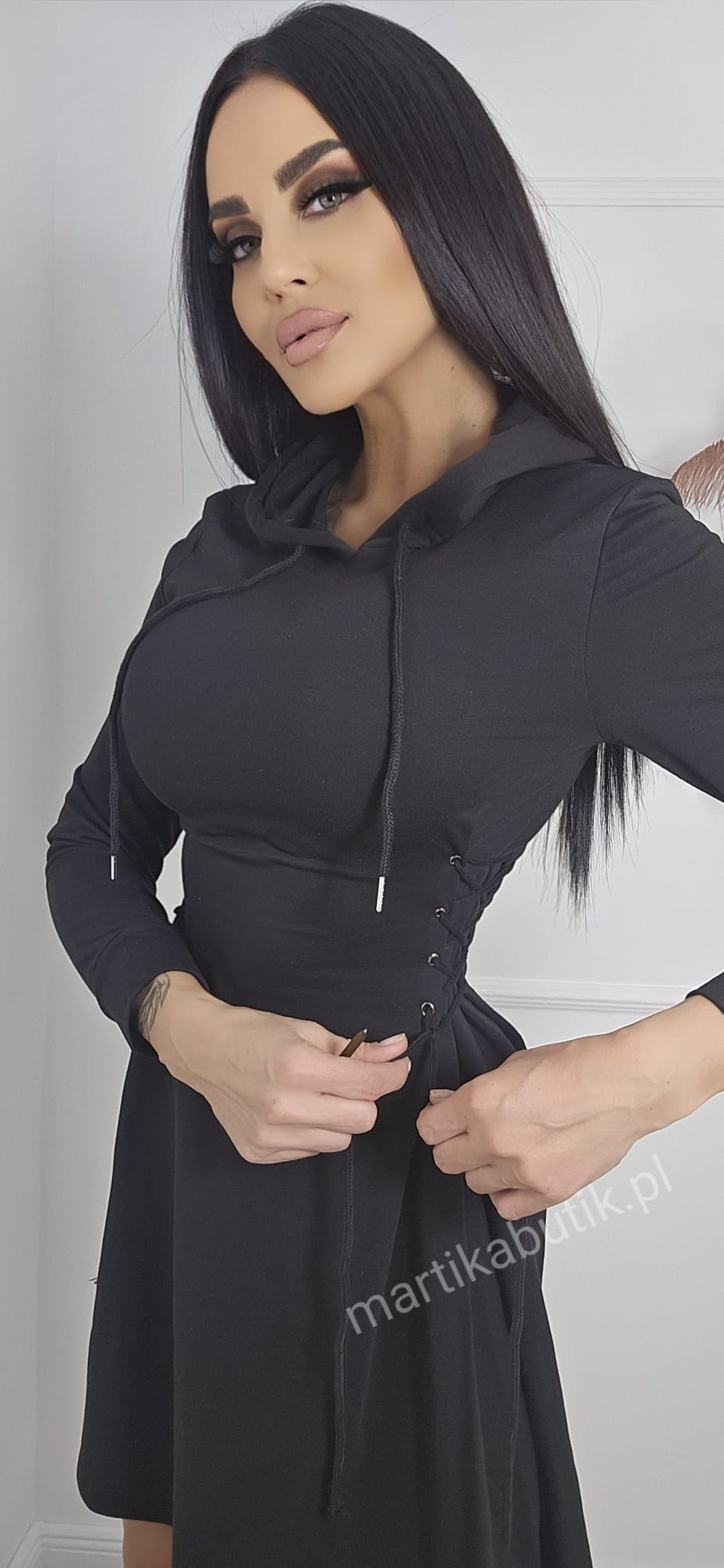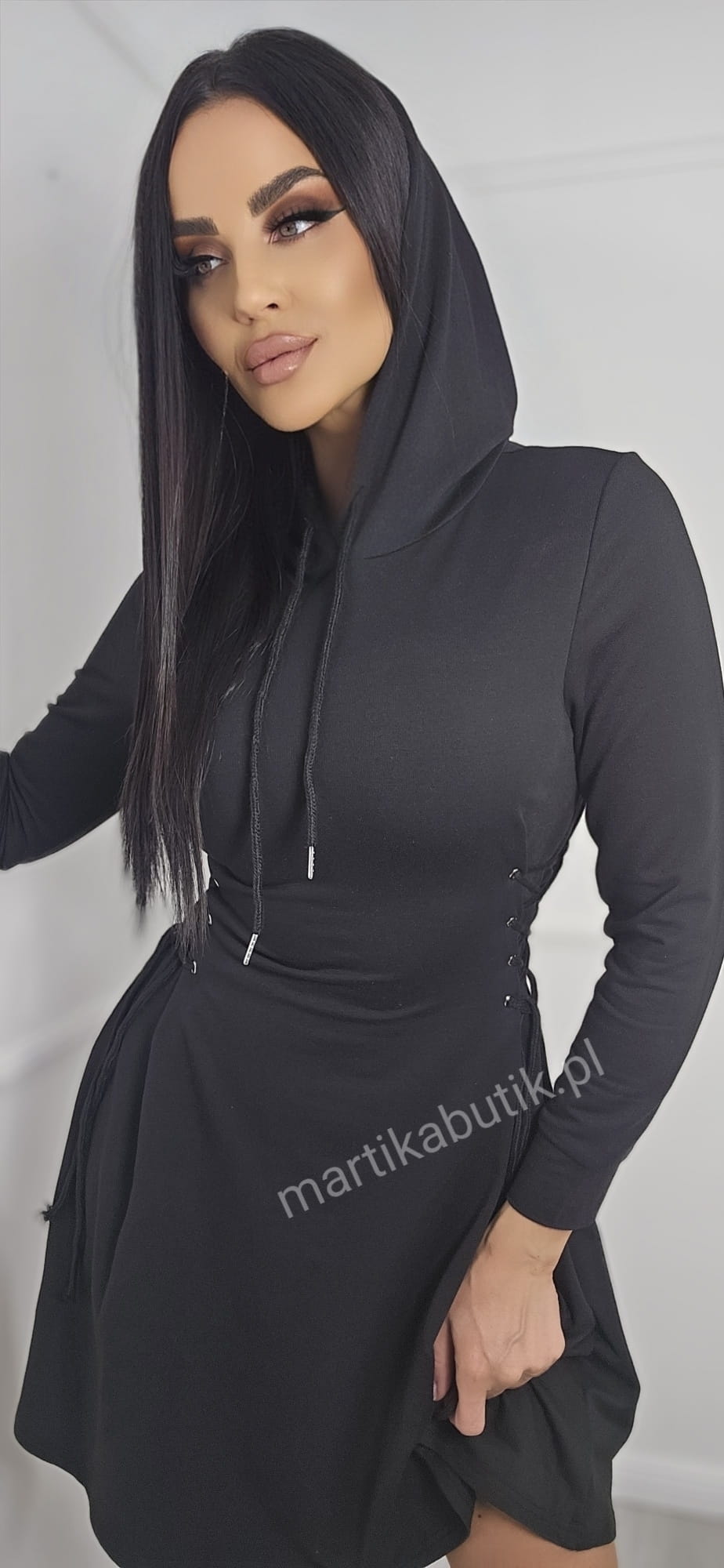 Sukienka dresowa gorsetowa z kapturem