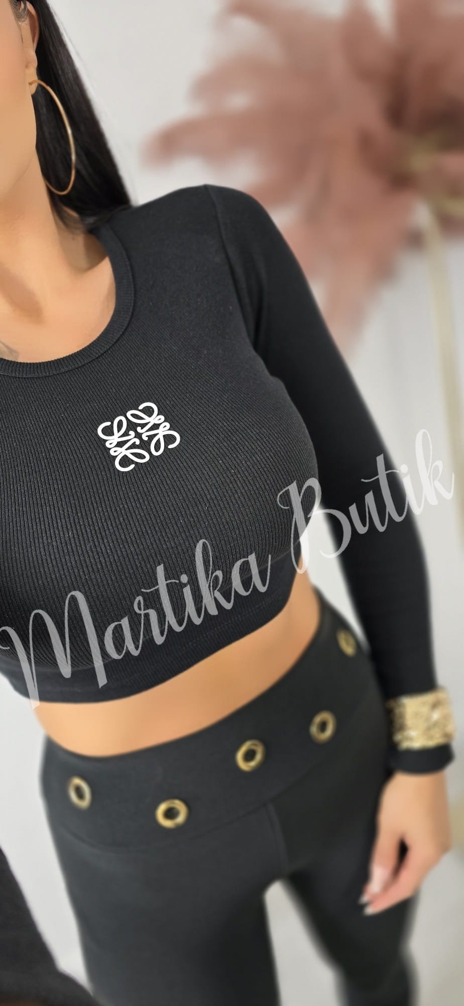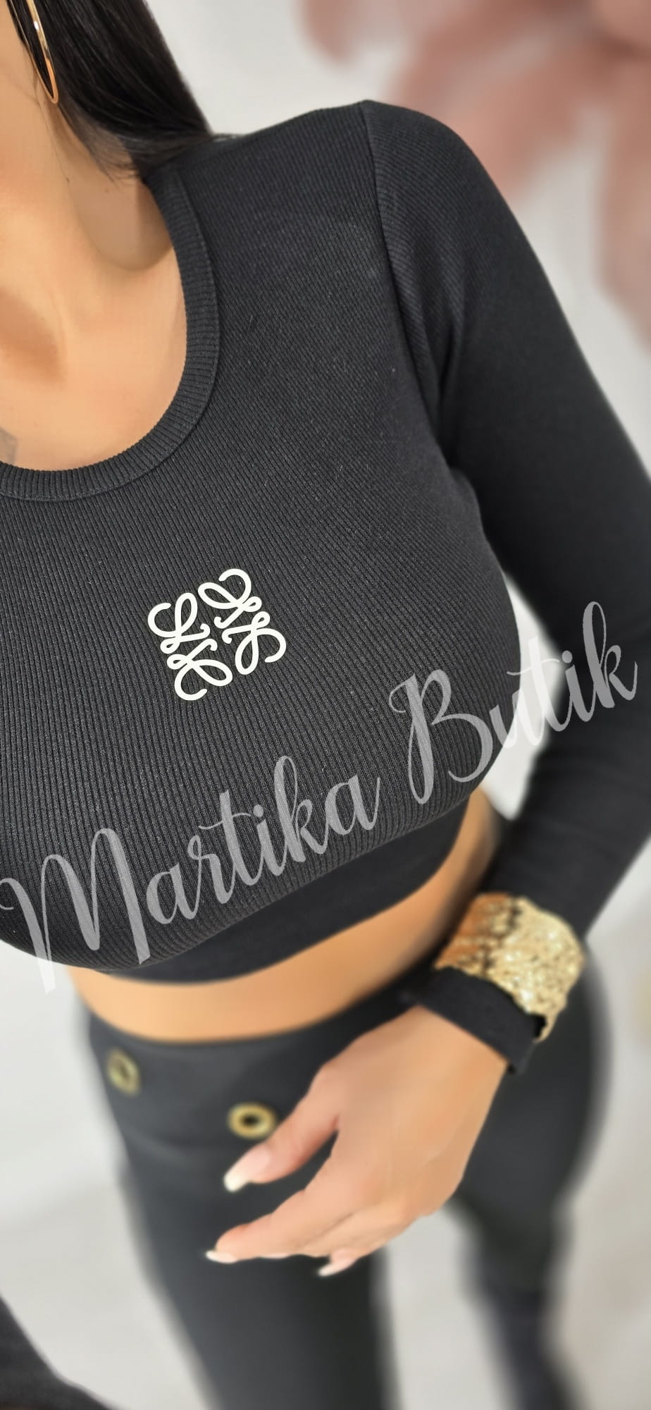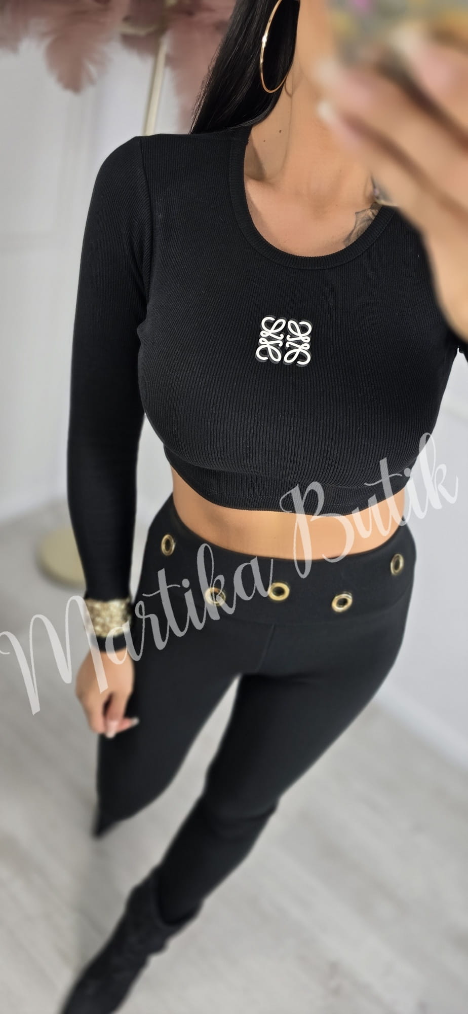 Basicowy bawełniany top w czarnym kolorze, posiada okrągły dekolt oraz gumowane logo na przodzie.