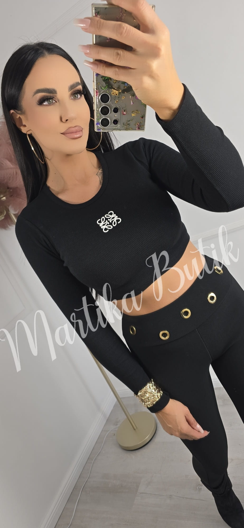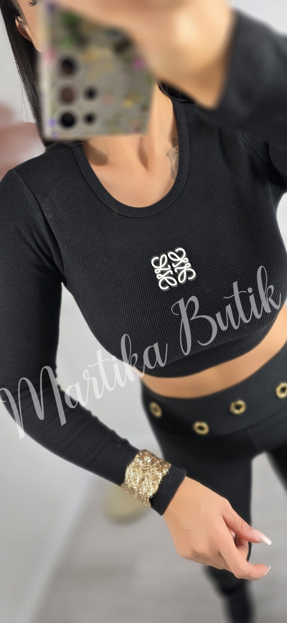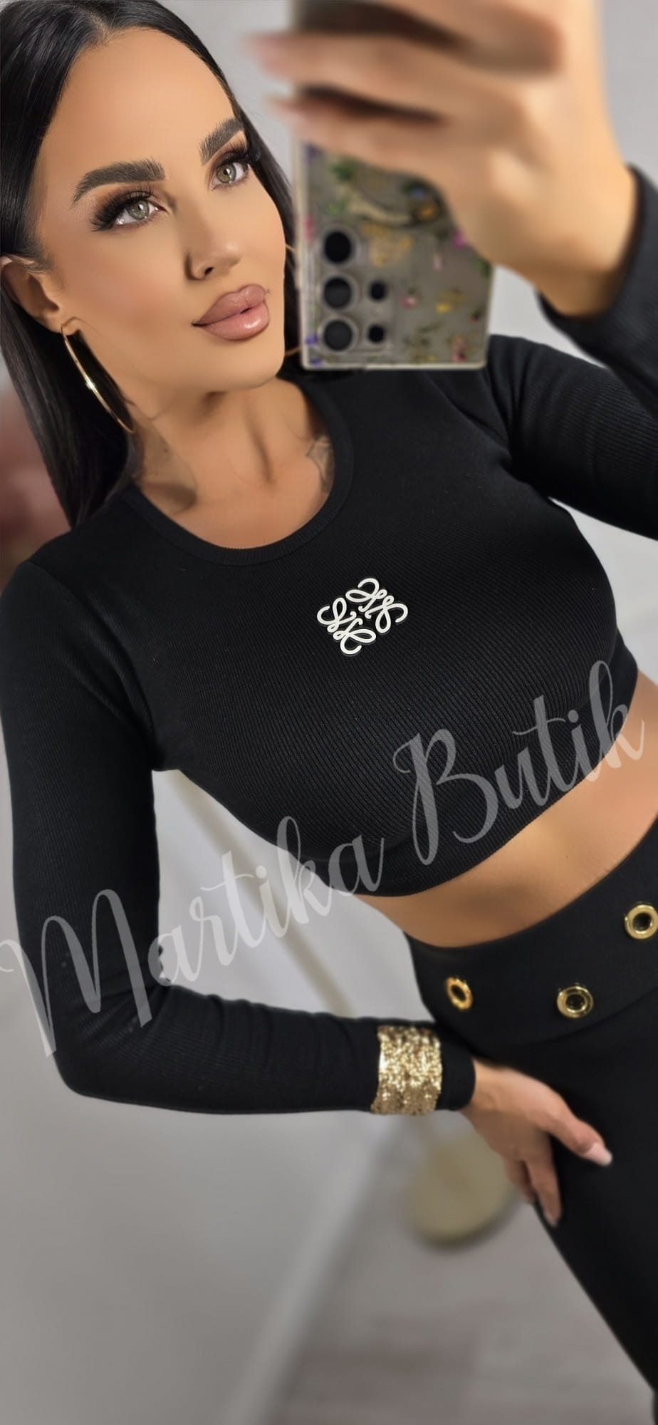Basicowy bawełniany top w czarnym kolorze, posiada okrągły dekolt oraz gumowane logo na przodzie.