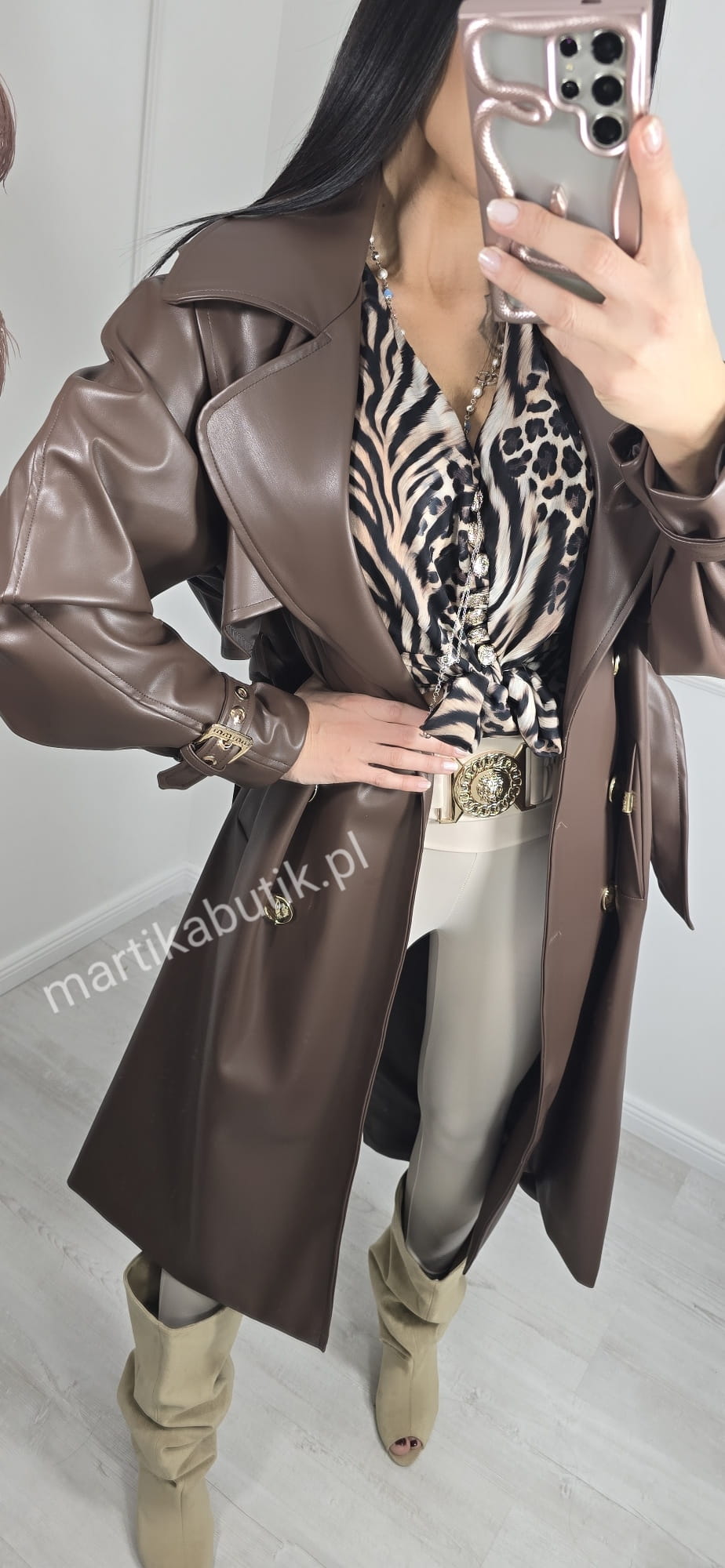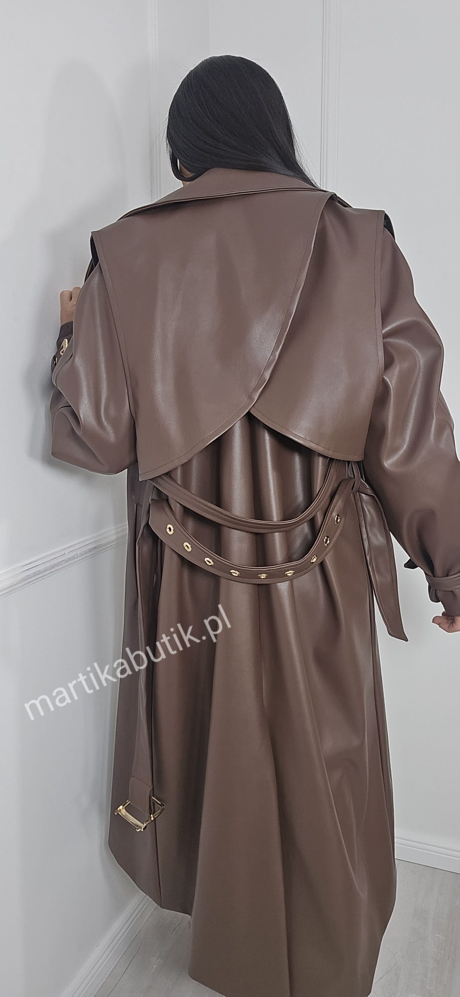 Stylowy płaszcz wykonany z wysokogatunkowej, niesamowicie miękkiej skóry ekologicznej.