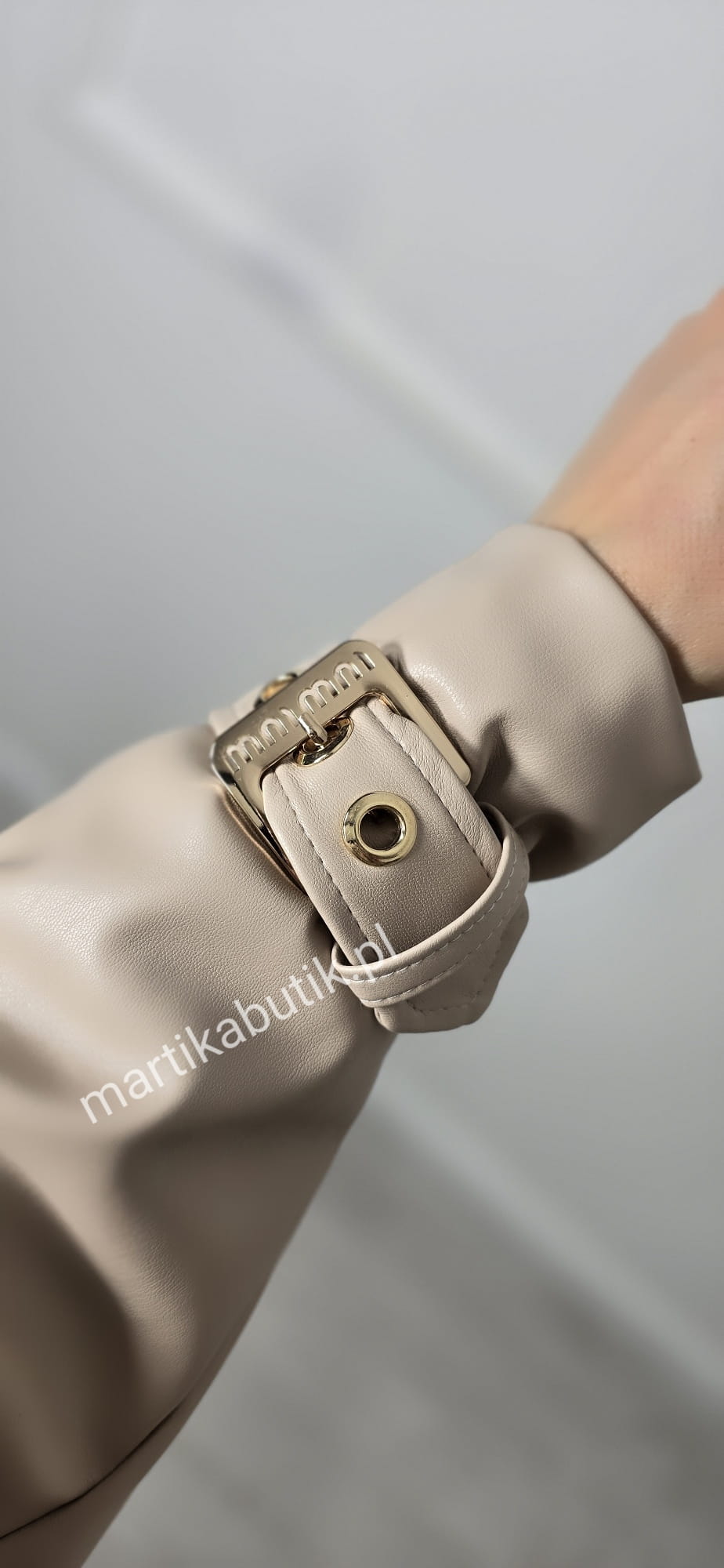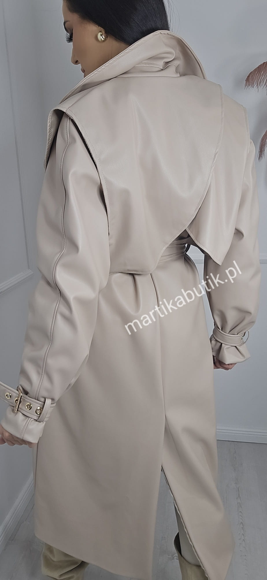 Stylowy płaszcz wykonany z wysokogatunkowej, niesamowicie miękkiej skóry ekologicznej.